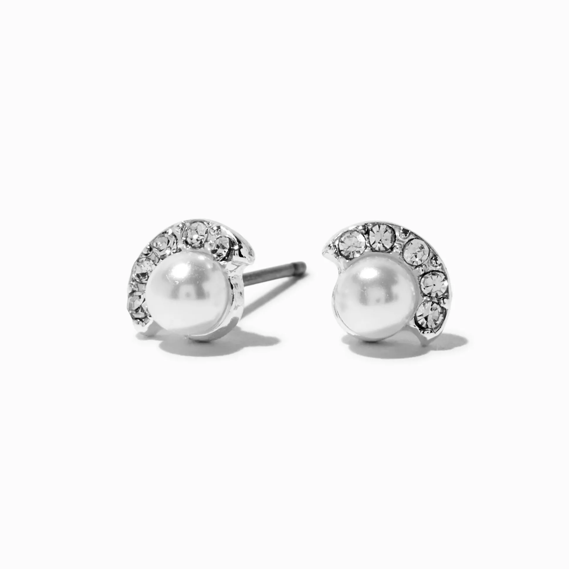 With shimmering faux pearls and sparkling faux crystals, these dainty earrings radiate style and elegance! The gems are set into silver-tone studs shaped like a fan.