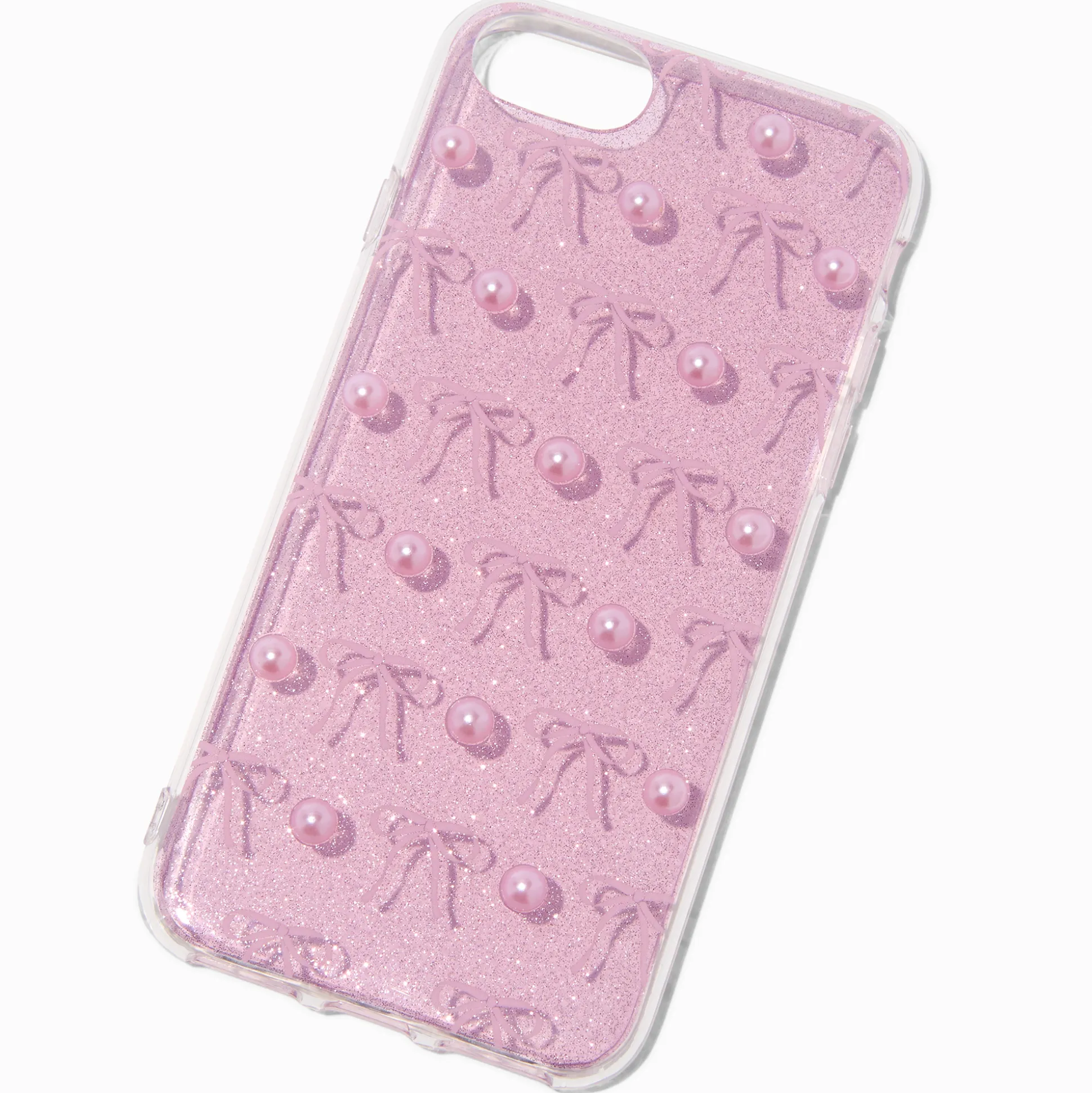 The coquette design on this glittery pink case will have you on trend, no cap. This sturdy case helps to protect your phone from bumps and bruises.