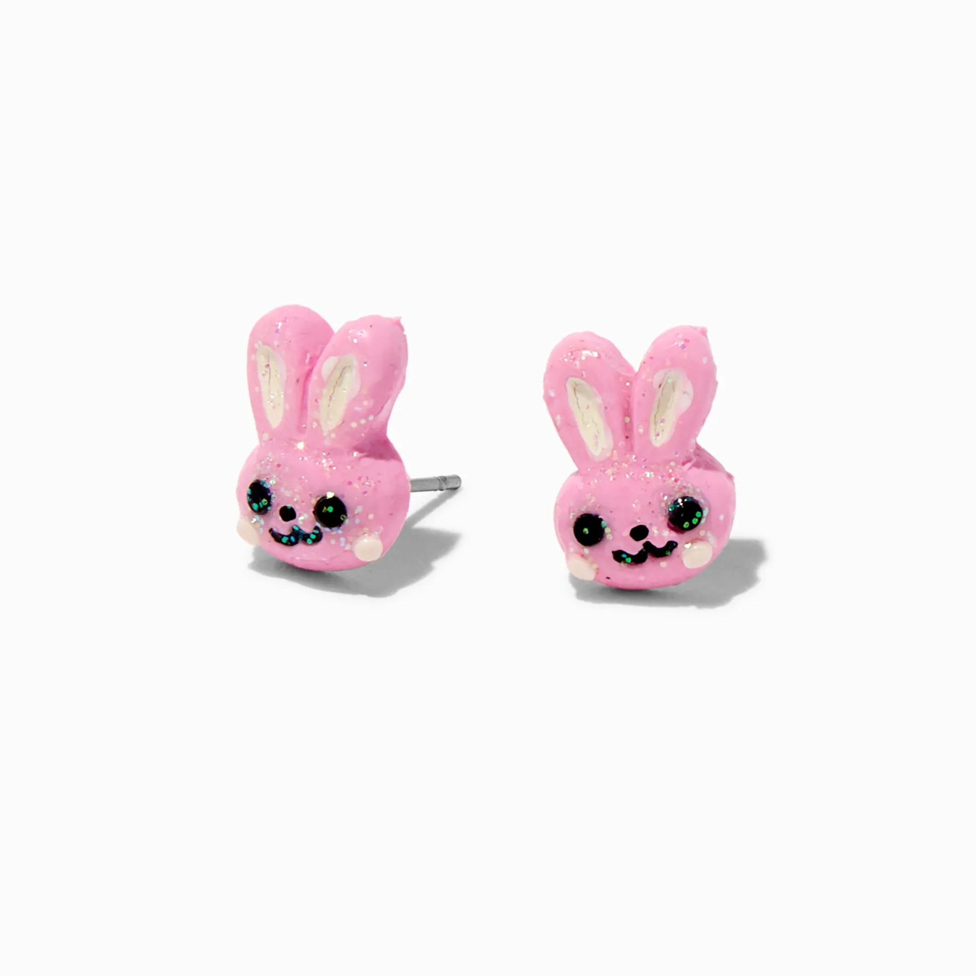 Hunny, you’d look adorable in these bunny earrings. The post-back earrings have pink bunny designs that are covered in sparkly glitter.