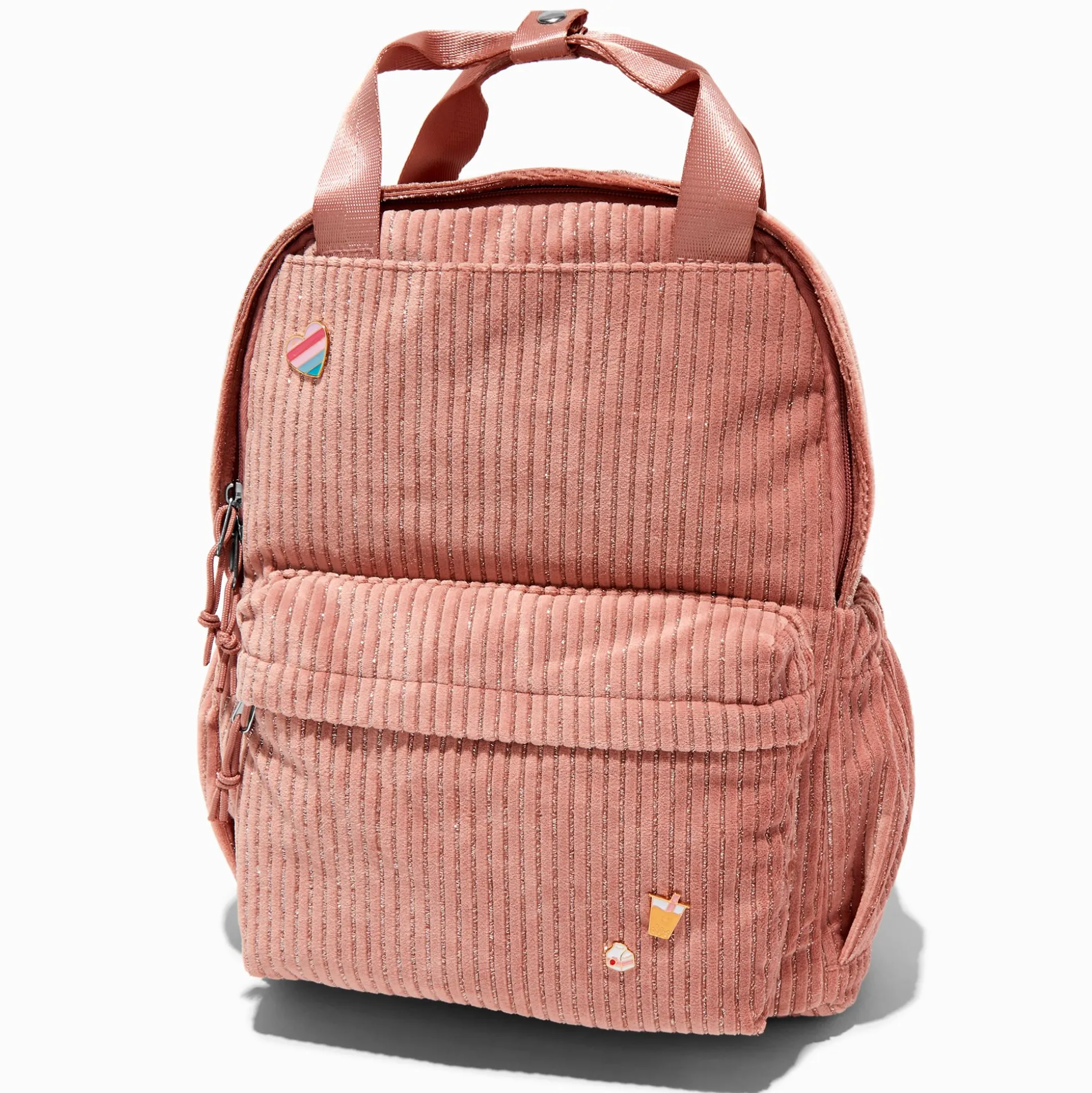 Have the perfect place for all of your school supplies and valuables with this corduroy backpack. It is decorated with pins and has plenty of space to add more to customize the exterior. The backpack has a securable slip pocket perfect for your phone near the bag’s handles. It also has padded, adjustable shoulder straps, an inside pocket for laptop/tablet, two side pockets for water bottles, and a front zip pouch.