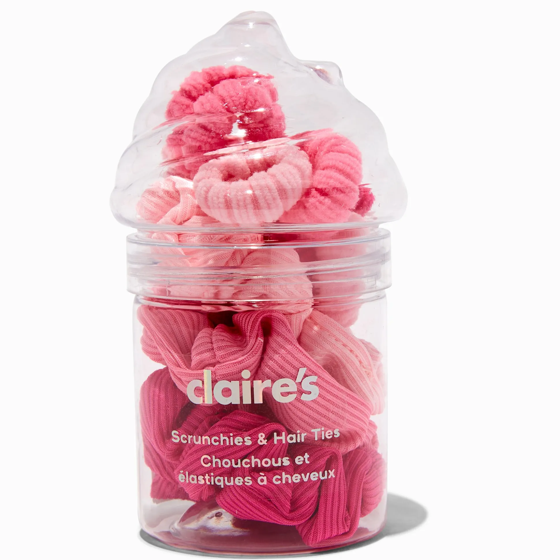 Scrunchies instead of scoops. This set comes with pink scrunchies and hair ties, stored inside an adorable ice cream carrying case.