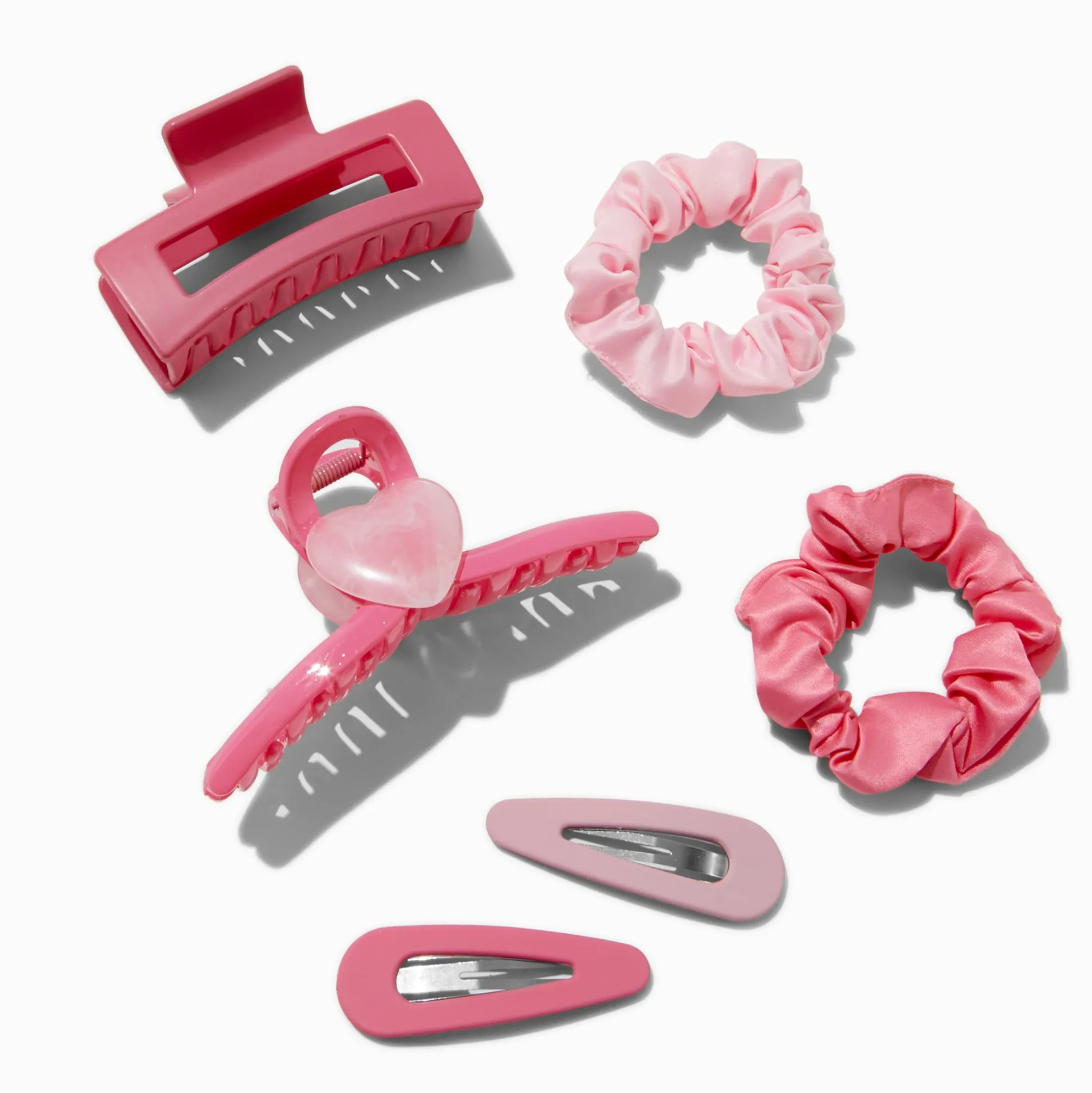 Do up your hair with this set of mixed hair accessories. The 6-pack includes two different sized and styled hair claws, two snap hair clips and two hair scrunchies.
