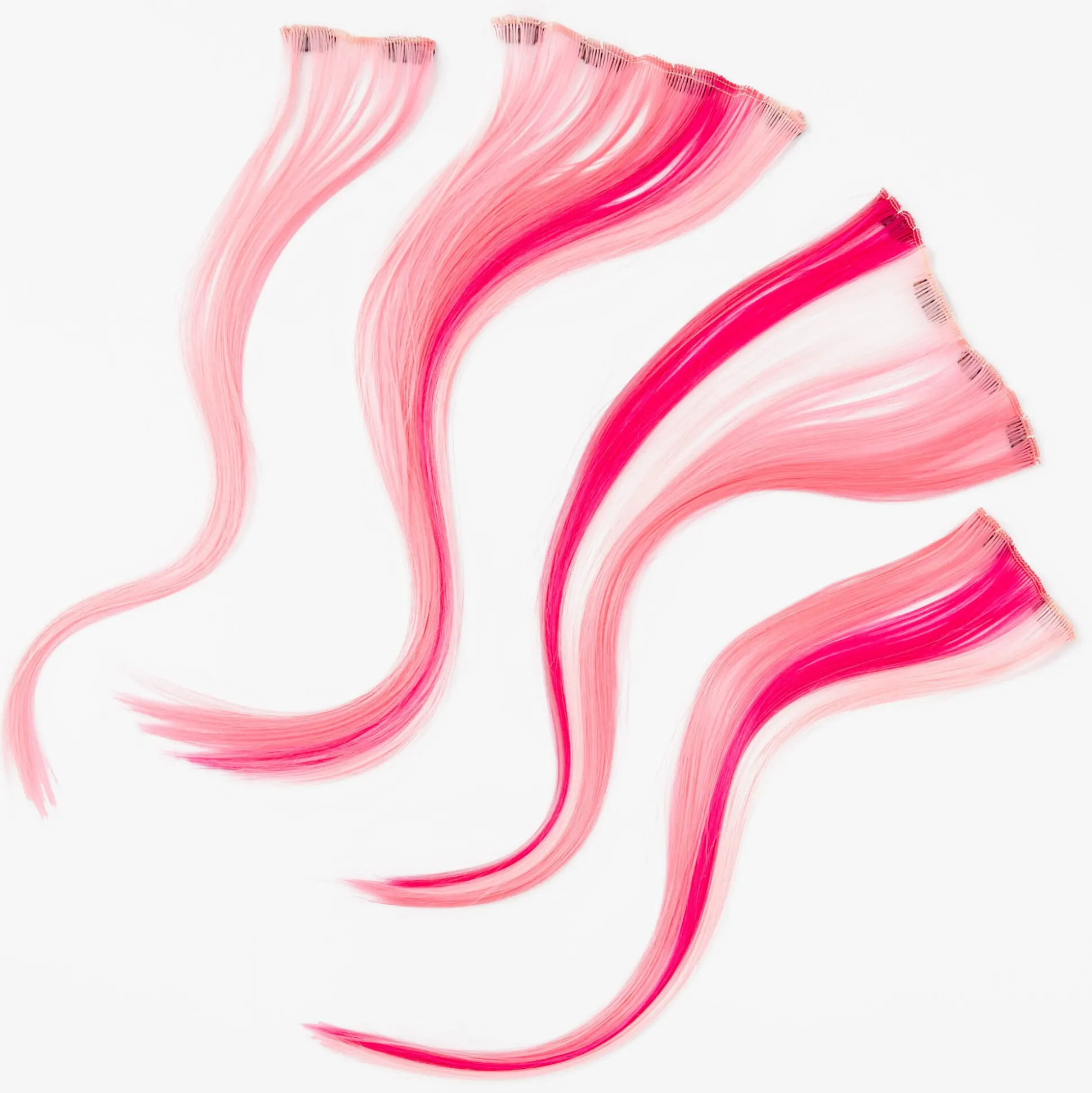 Add some ombré color to your hair in an instant with no dye necessary! These two faux hair clip in extensions are designed with pink ombré colors. Perfect for festivals, parties, and more!