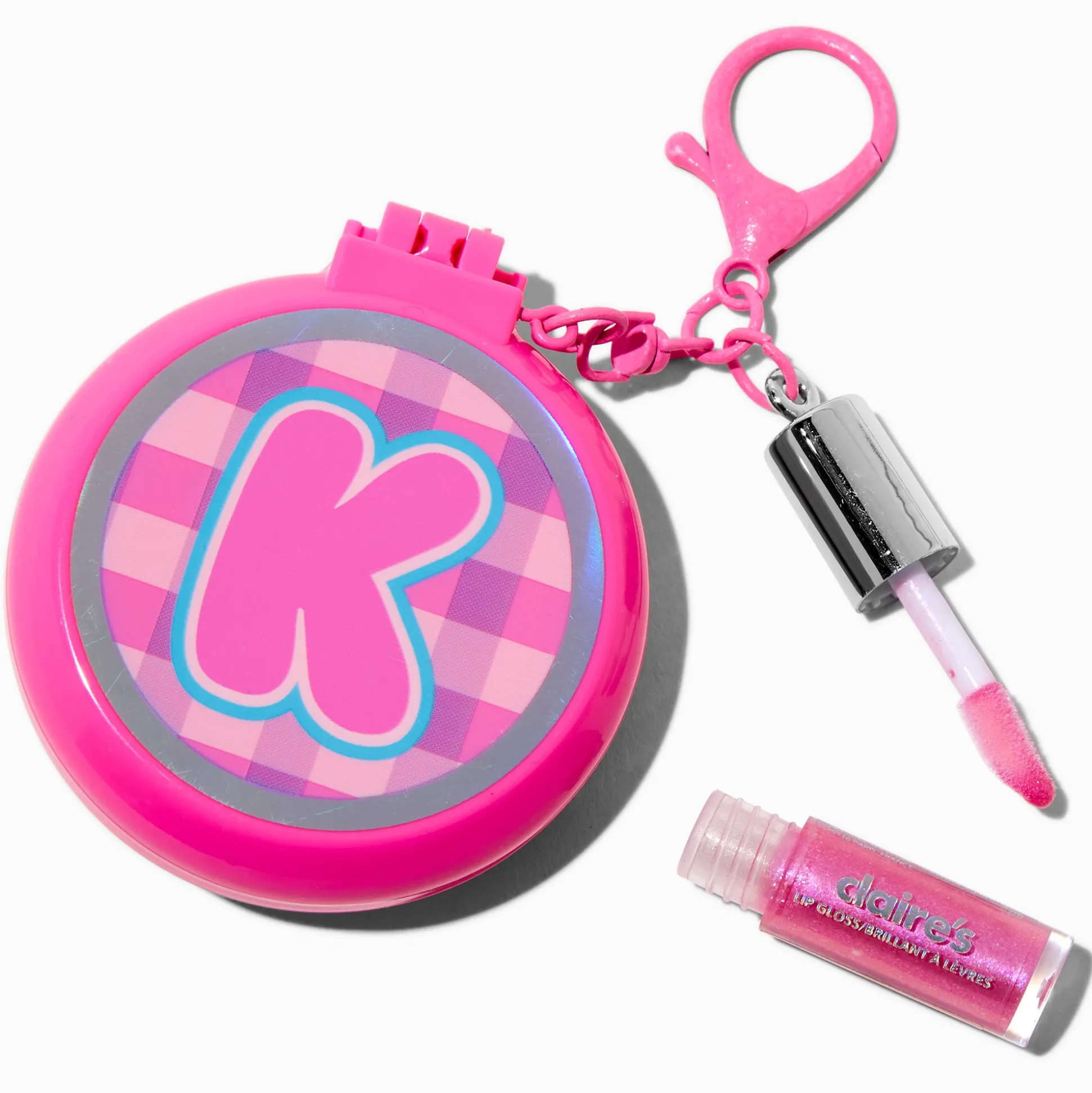 Pink Plaid Initial Hair Brush & Lip Gloss Keychain – K