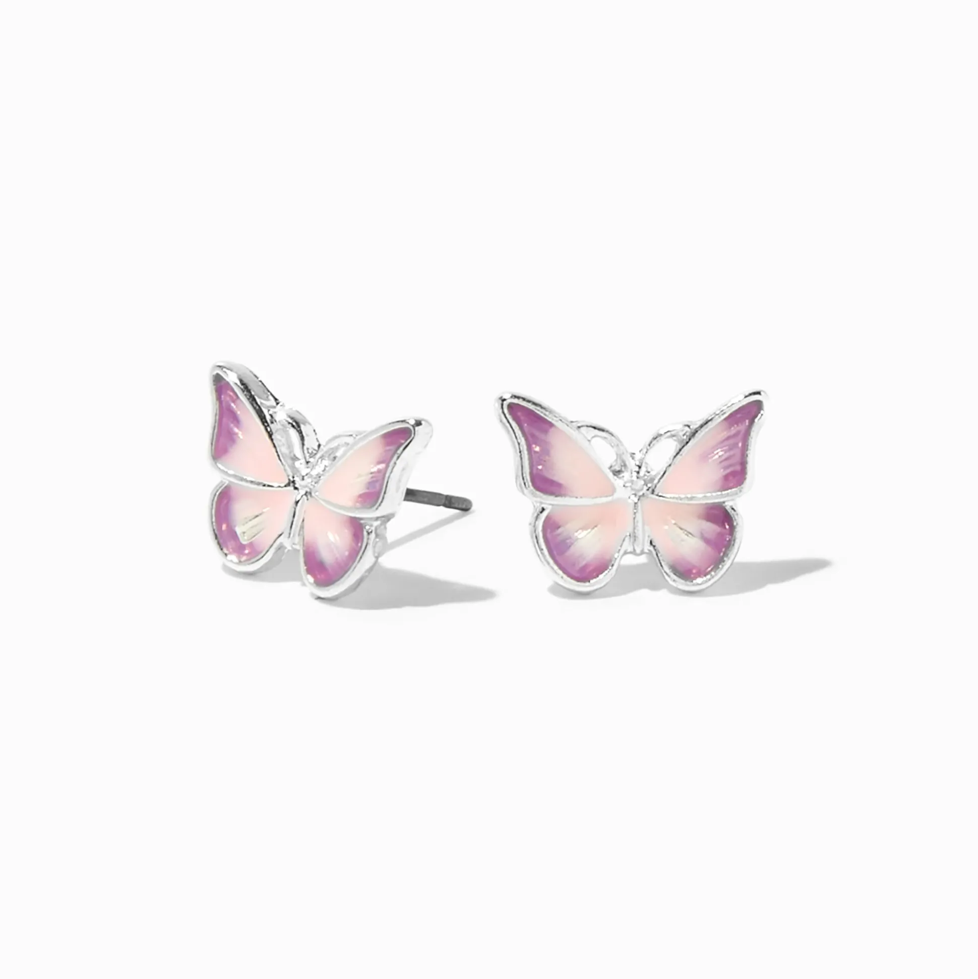 Look fly like a butterfly in these colorful studs. The silver-tone earrings have a purple and pink ombré color.