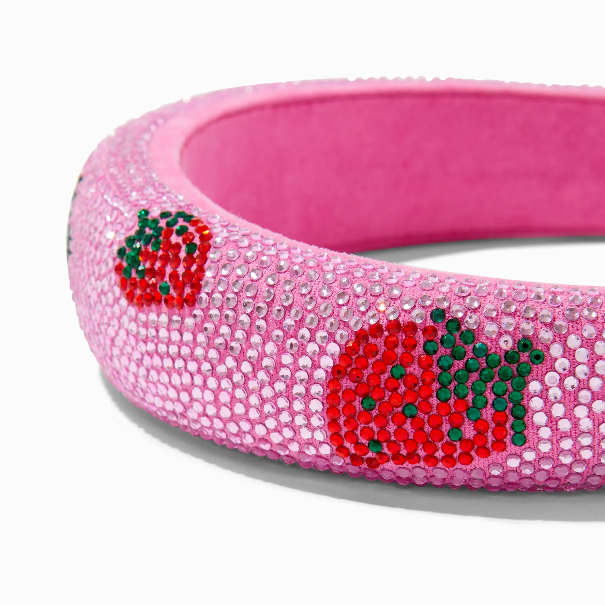 Bling it on! This eye-catching pink headband is covered in brilliant faux crystals for nonstop sparkle and it features a super sweet strawberry design that’s perfect for summer.