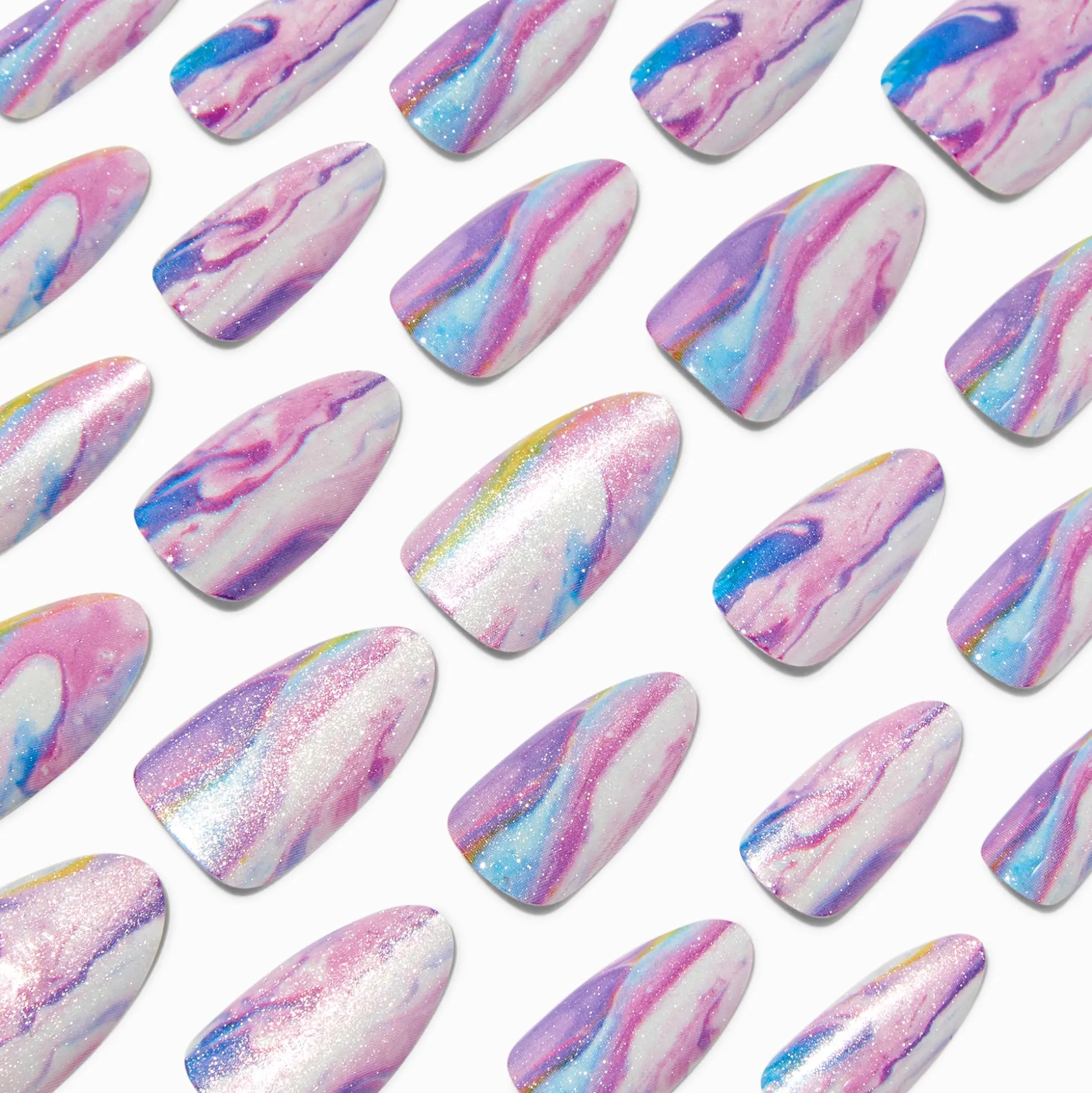 With an improved fit and up to a 7-day wear, these vegan faux nails are on-trend faves. They come in 12 different sizes, so finding the perfect shaped nail is a breeze. With an almond shape, these faux nails have a galaxy finish.