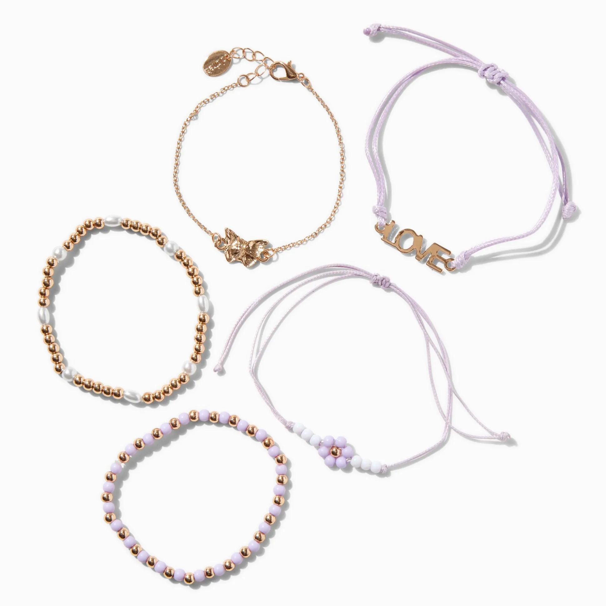 Give yourself options with this five-piece bracelet set. Bracelets include a “Love” bolo bracelet, a flower bolo bracelet, a butterfly chain bracelet, and two stretch beaded bracelets. Wear one or stack them to create a look that’s all your own.