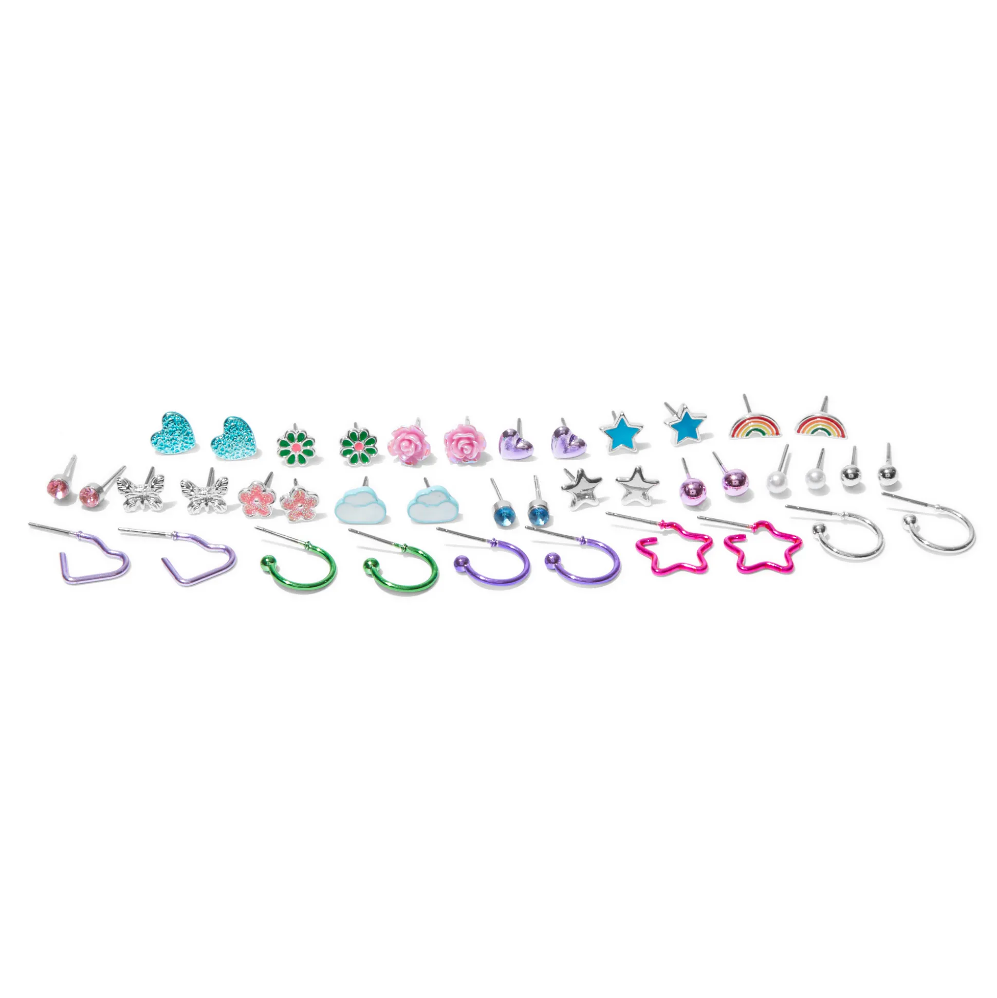 Always have the perfect pair of earrings with this expansive set. The 20 pack includes Spring icons in stud and hoop fashion.