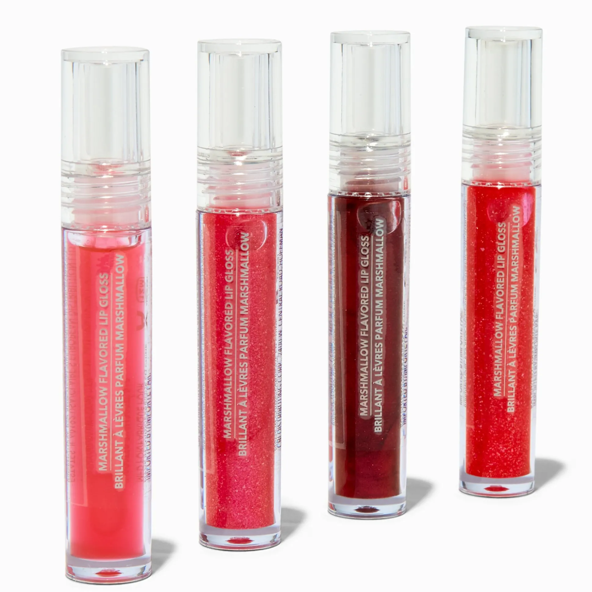 Make lips shine in gorgeous red shades with this set of shimmery lip glosses. Includes 4 lip gloss is a red, monochromatic color scheme.