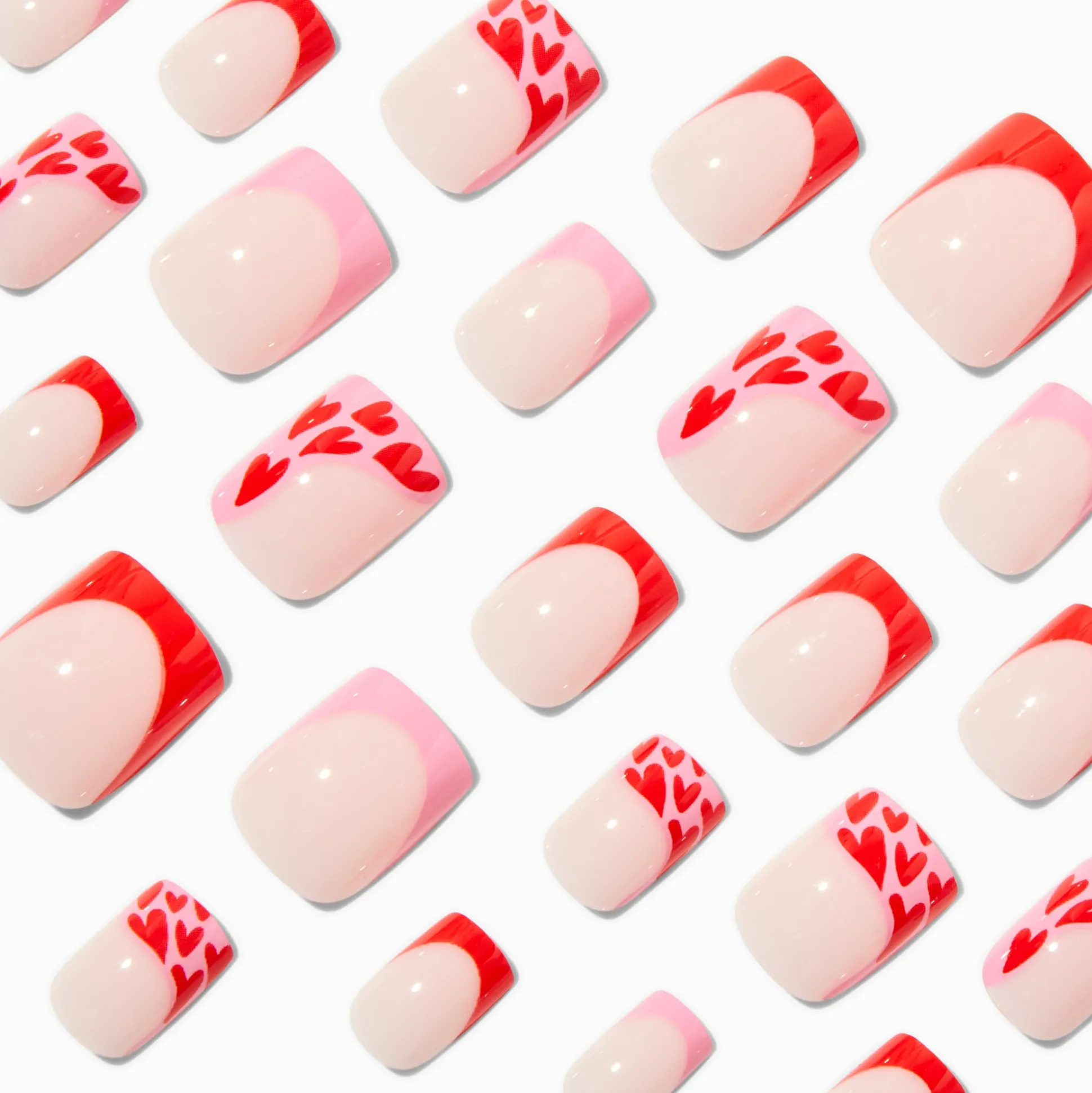 With an improved fit and up to a 7-day wear, these square vegan faux nails are on-trend faves. They come in 12 different sizes, so finding the perfect shaped nail is a breeze. With a square shape, these faux nails have red and pink heart French tip finish.