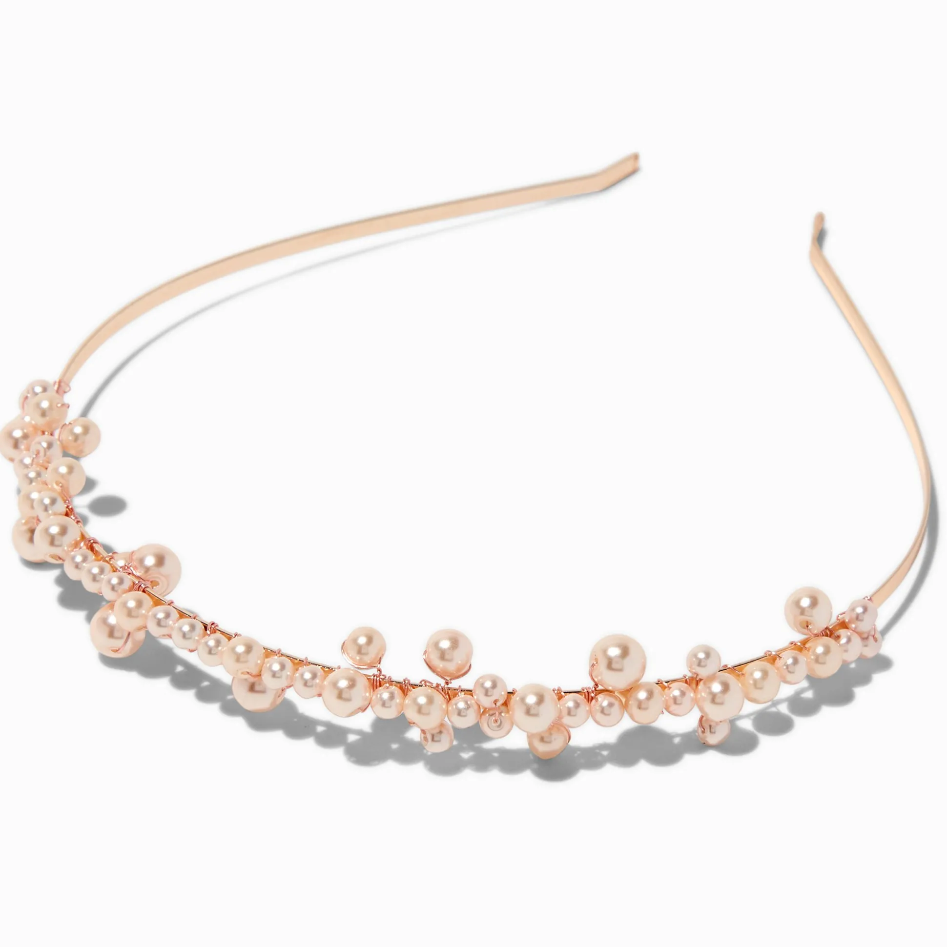 Dot your hair with the classic look of pearls with this headband. The rose gold-tone thin headband is covered in faux pearl clusters.