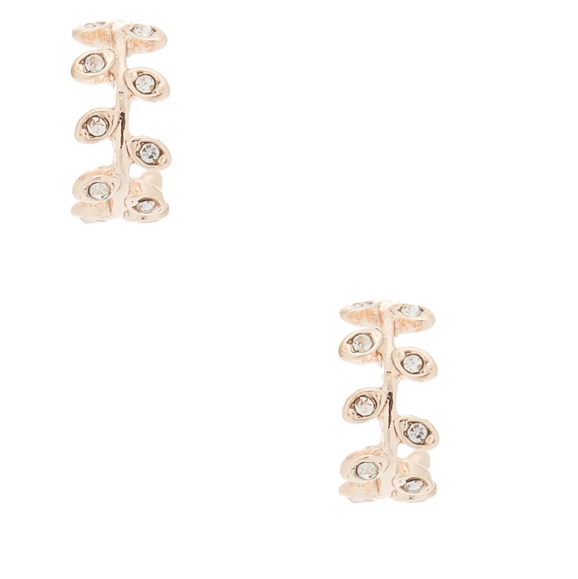 Get a glamorous look by wearing this pair of hoop earrings. The rose gold-tone hoops are in a vine design with crystal accents.