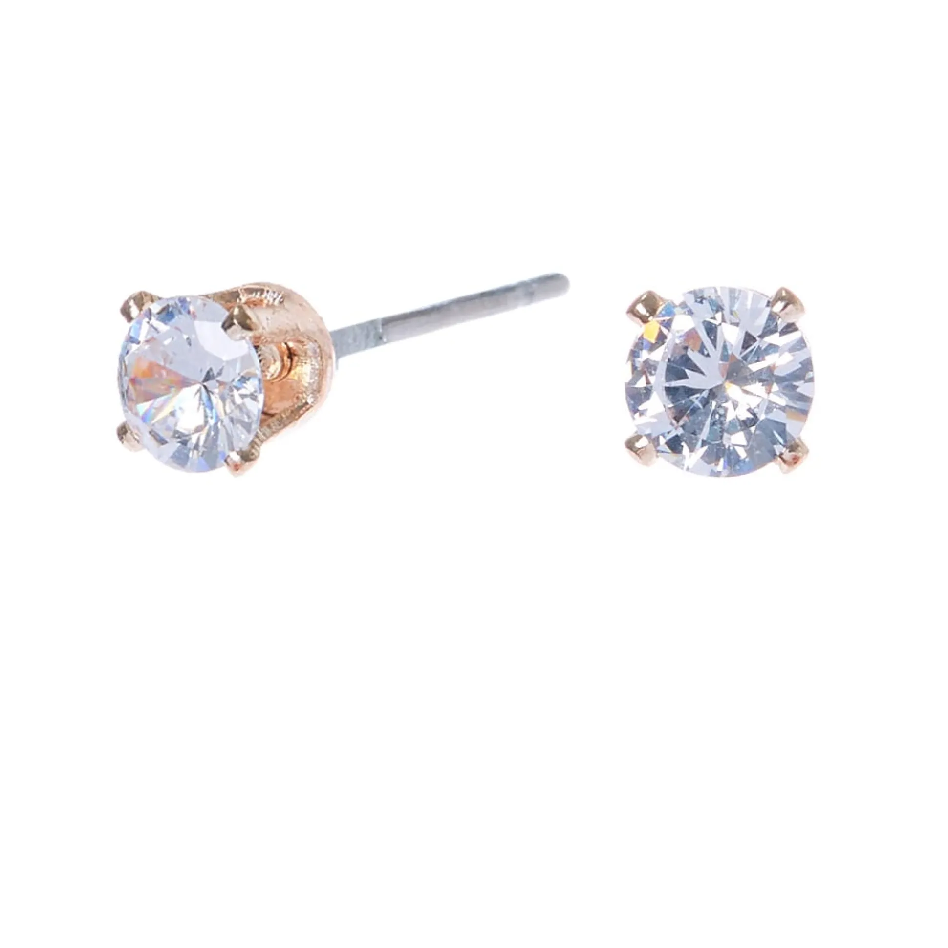 Add a pop of sparkle to your outfit with this pair of earrings. The cubic zirconia stud earrings pair well with other trendy rose gold-tone jewelry.