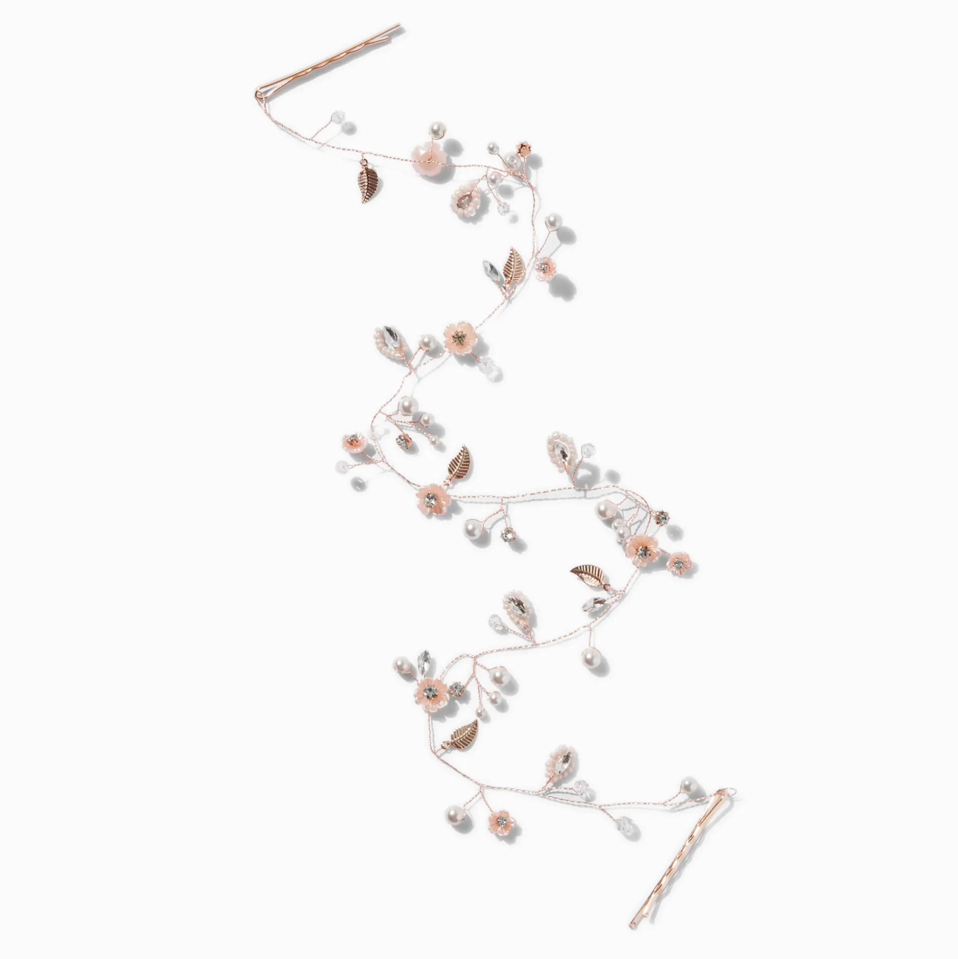 A hair swag, with pins on each end for secure placement, is a quick and easy way to add elegance to your hair for special occasions. This one features rose gold-tone pearlized flower details. It can be worn like a headband or wrapped around a bun.