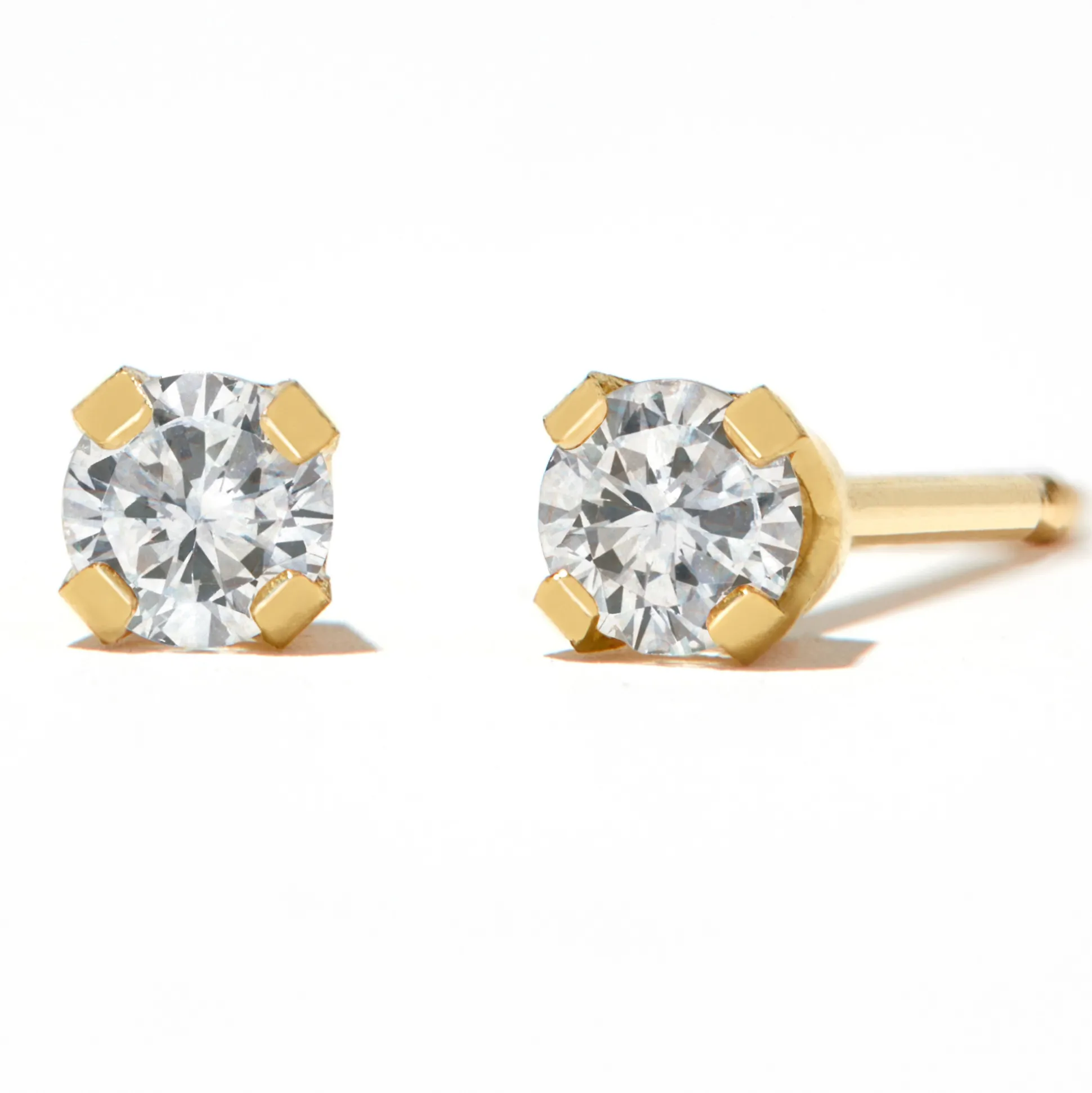 Get real with your expanding bling collection with these diamond stud earrings. These 14kt yellow gold earrings feature round shaped diamonds with a secured post back closure, making them perfect for everyday wear. Diamonds are associated with strength, love, and health and are the perfect gift for any occasion. Fun fact: Diamond is the hardest substance known by human beings. Isn’t that cool? We think so. These gold-tone beauties will pair well with other gold jewelry, so the options are endless.