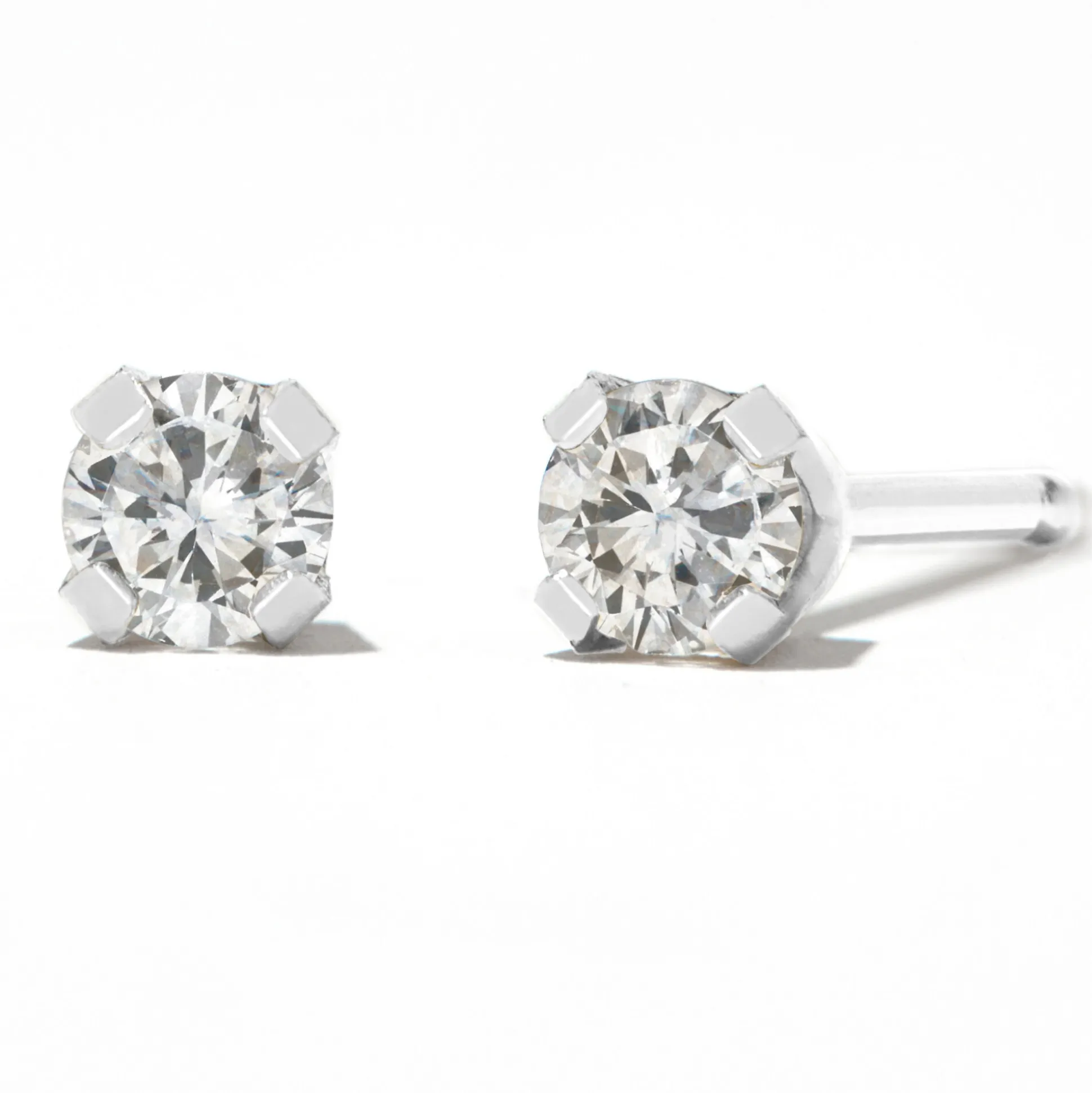 - Set in 14kt white gold with 14kt white gold clutch backs