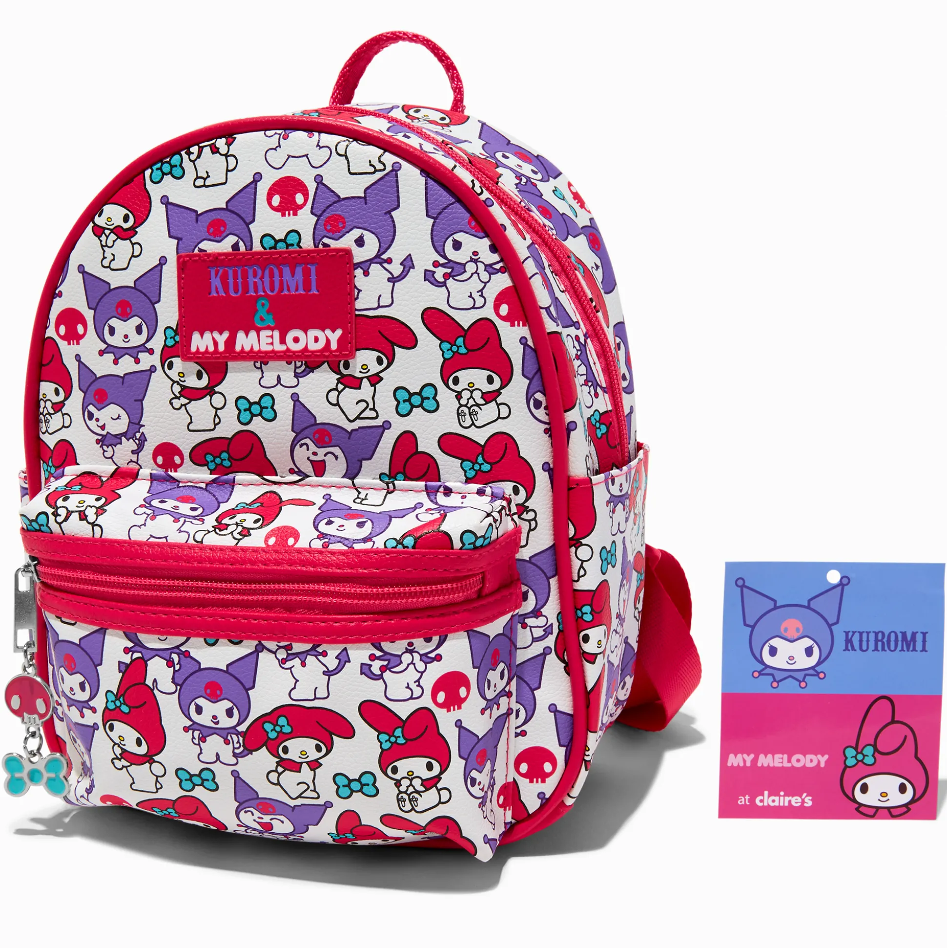 Keep yourself organized when you’re on the go with this Sanrio®-themed backpack! The Kuromi™ & My Melody™ backpack has a patterned exterior, a zip closure, a front zip pocket, and adjustable straps.