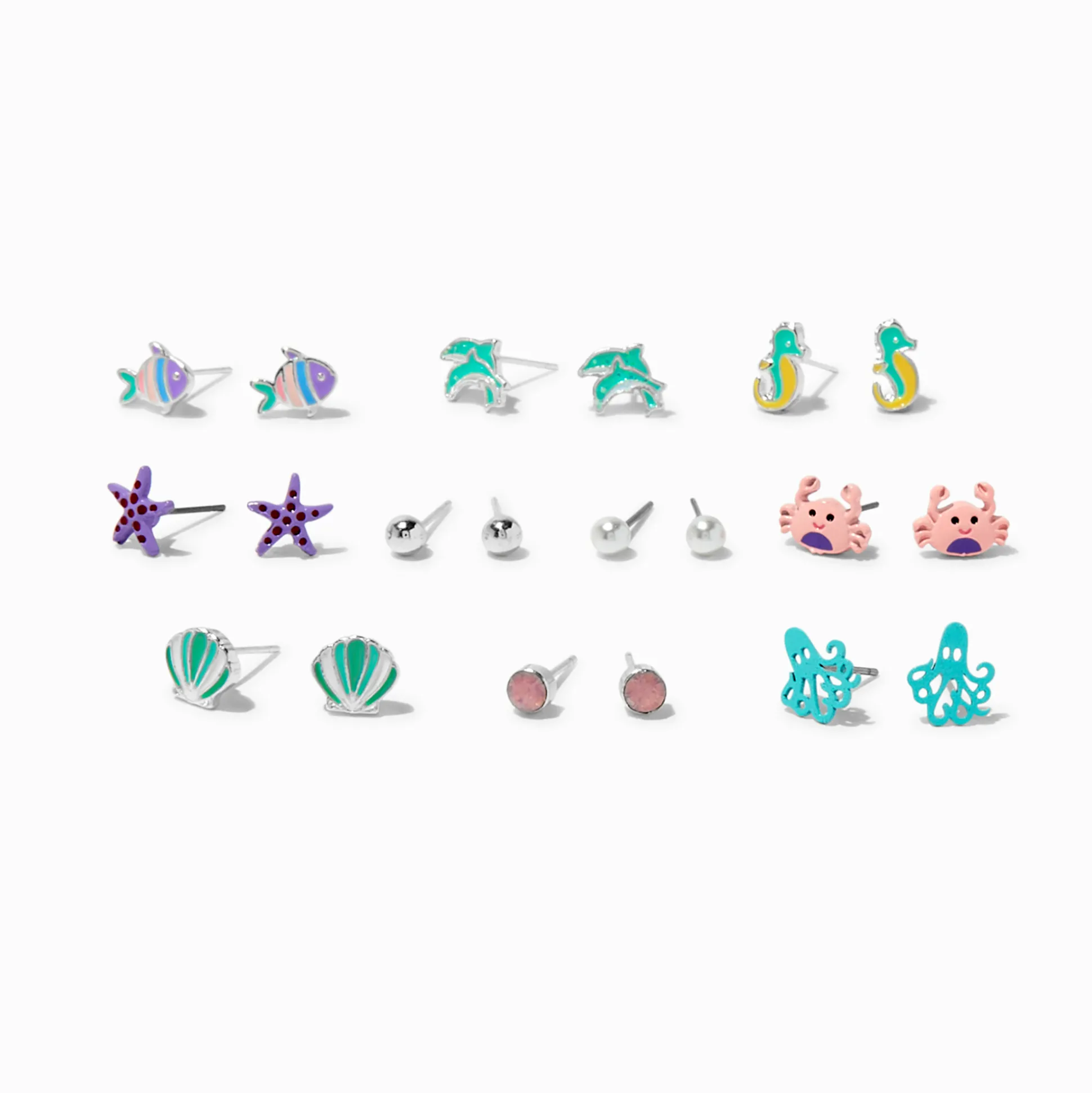 Under the sea is a wonderful place to be! This 10-pair pack of beachy stud earrings includes sea animals like a seahorse, a crab, and the cutest octopus you ever did see. You also get three pairs of plain studs that coordinate with the sea animals.