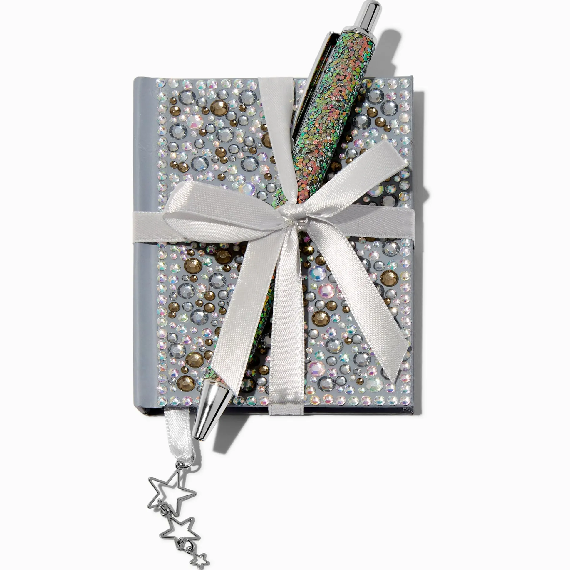 Silver Bling Star Mini Notebook & Pen Gift Set