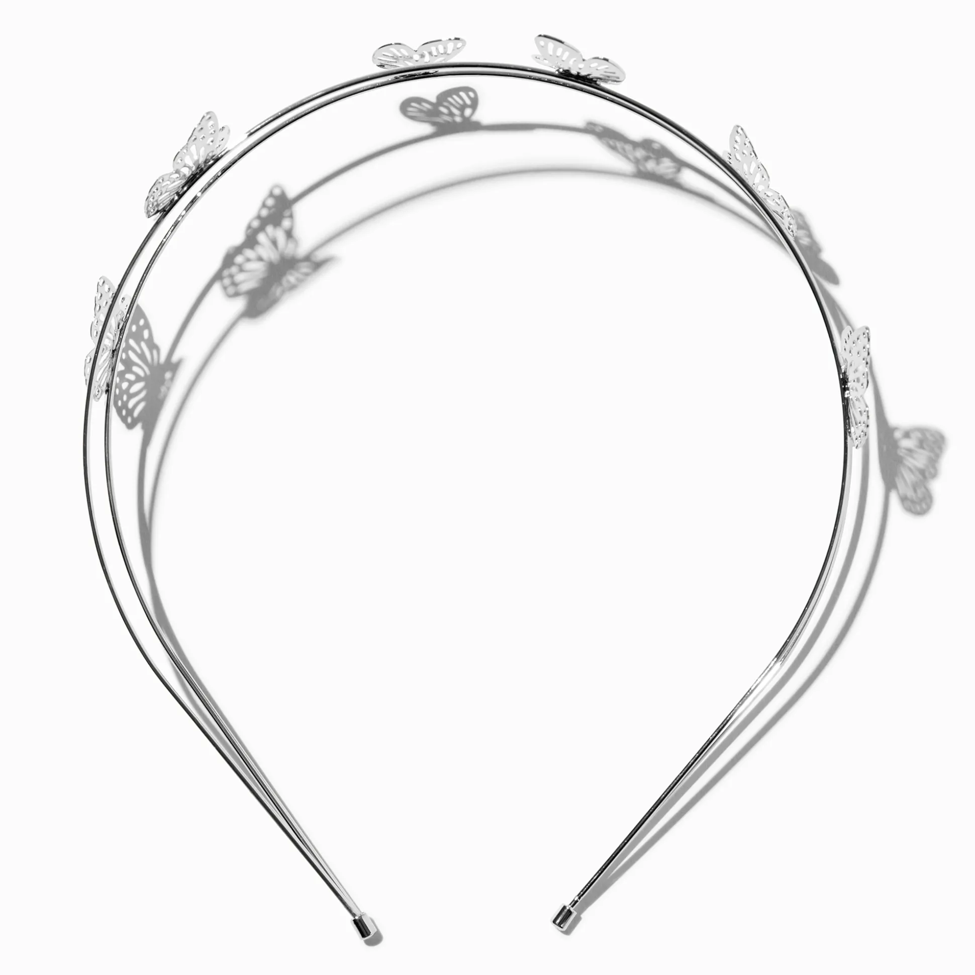 Raise the wow factor with this fabulous headband! The narrow silver-tone metal headband is accented with matching silver-tone butterfly charms.