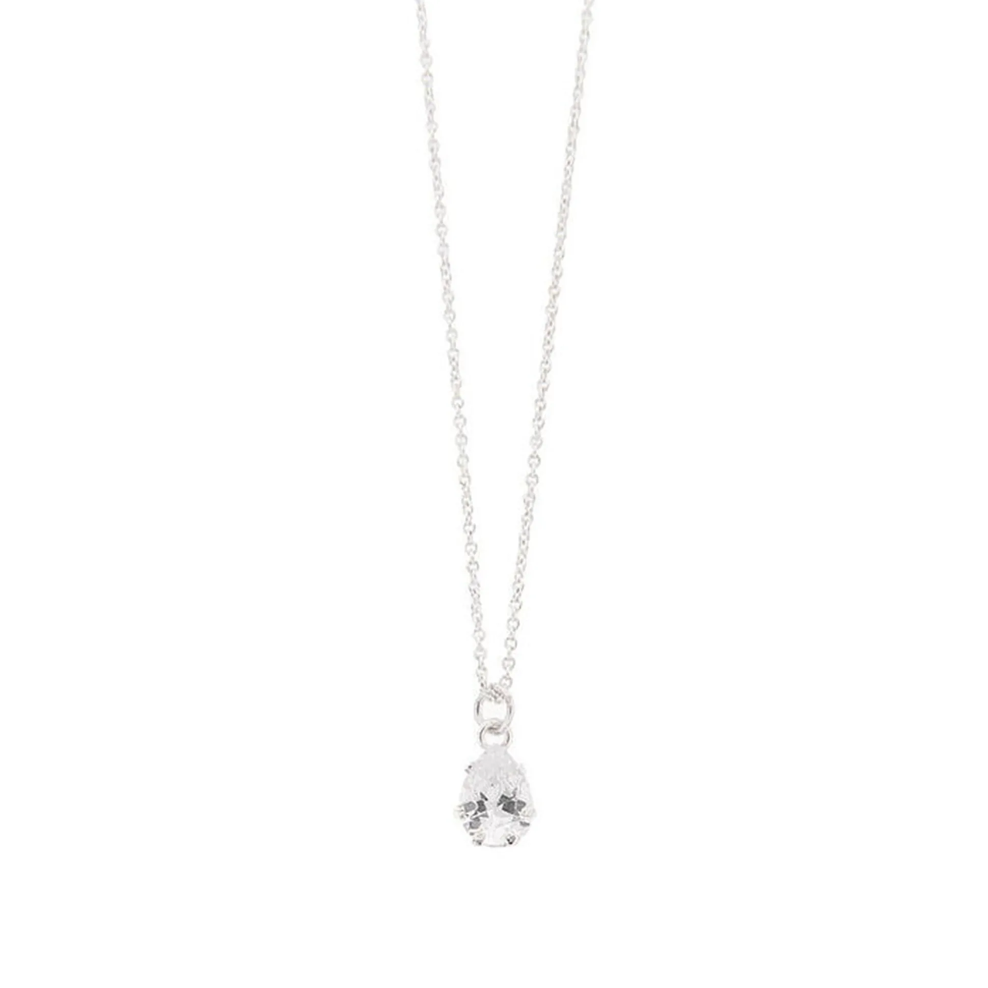Add a pop of sparkly detail with this necklace! A pear shaped cubic zirconia stone hangs from a dainty silver-tone chain.