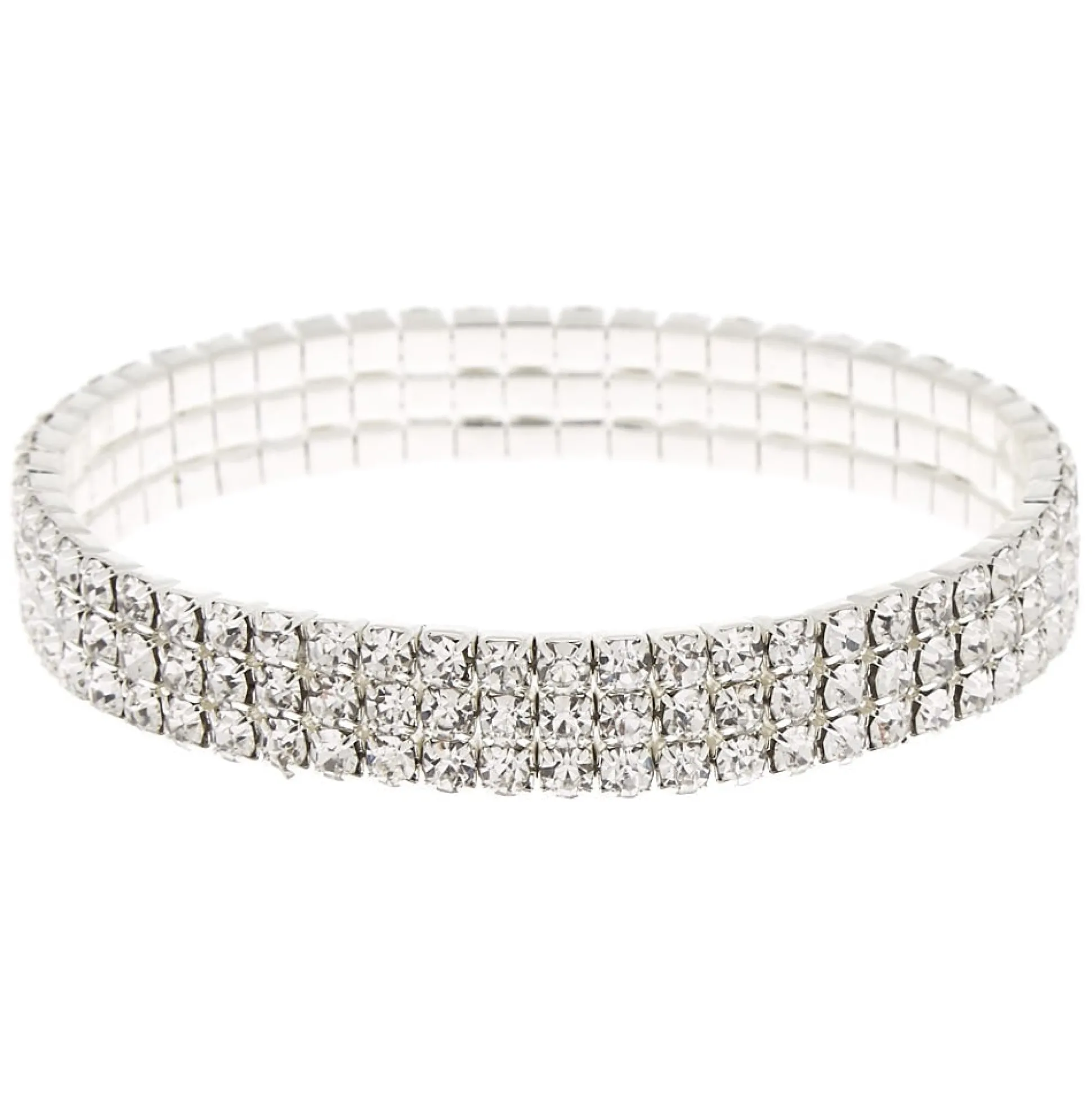 No outfit is complete without bling! This silver-tone stretch bracelet is lined with three rows of glass rhinestones to give you the perfect amount of sparkle.