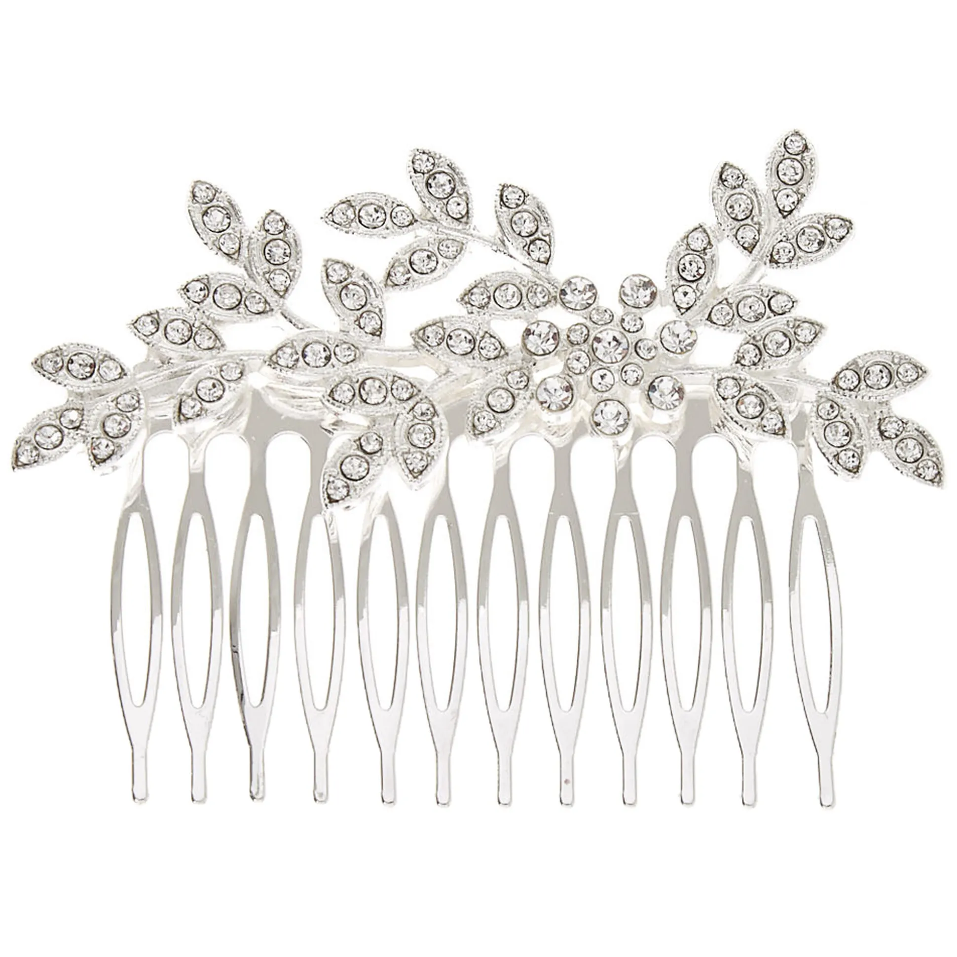 Embellish your hairdo with this chic hair comb! A floral vine design is embellished with glass rhinestones for a beautiful look.