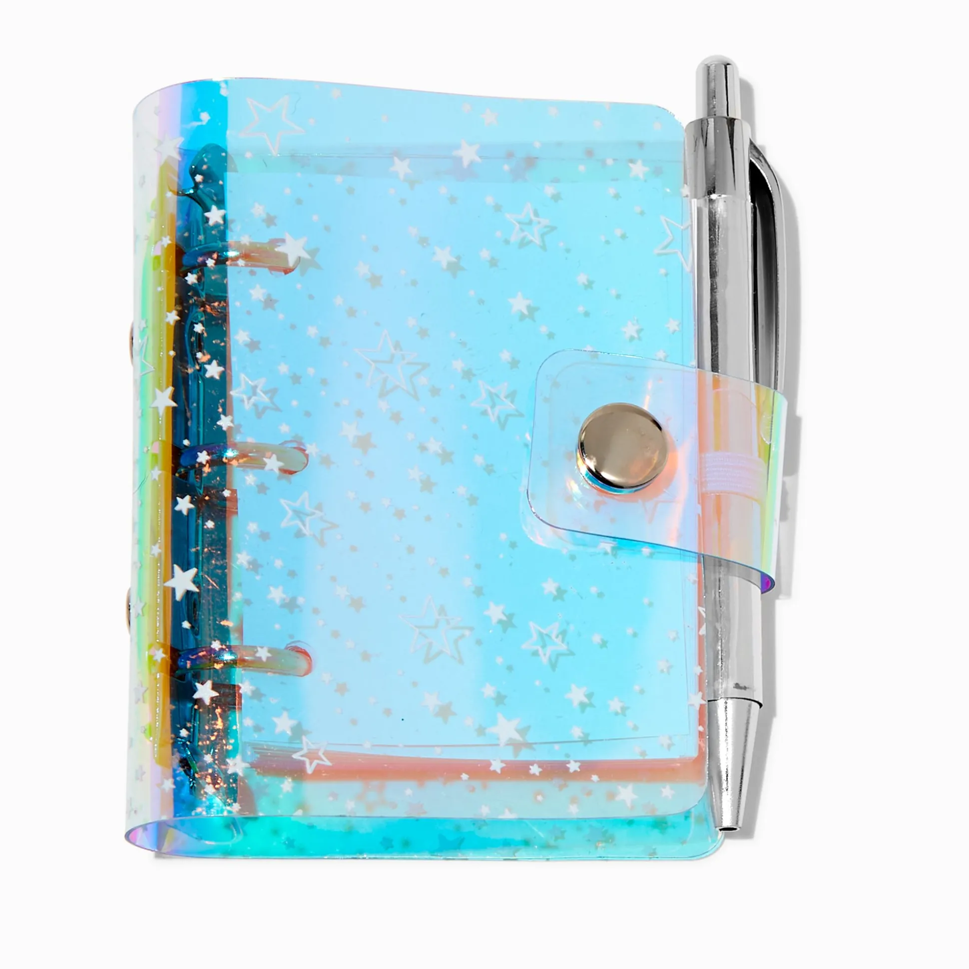 So perfect for sketching or writing down your thoughts when inspiration hits, this compact, binder-style notebook tucks right into your backpack or purse so it’s always handy. The front is covered with a star design, the inside has unlined pages, and there’s a loop inside to keep the included pen in place.