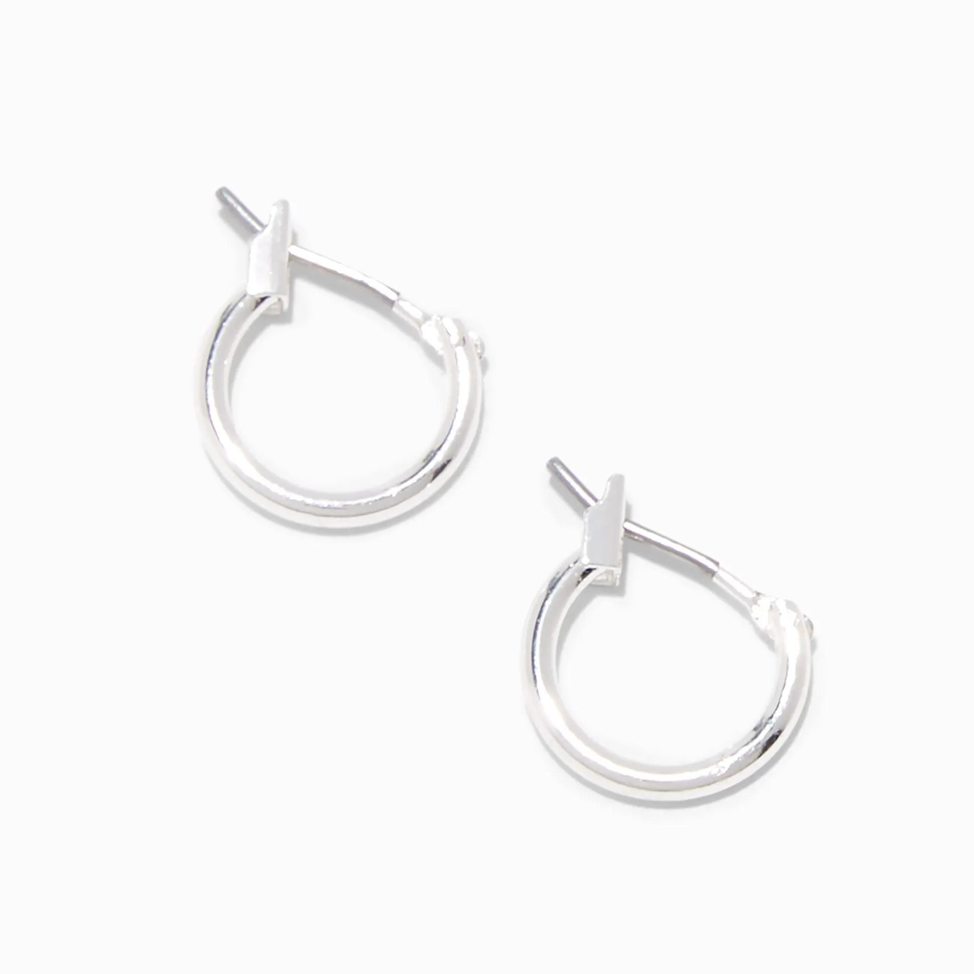 Complete your look with these extra small silver-tone hoops. They have a classic look and a hinge closure.
