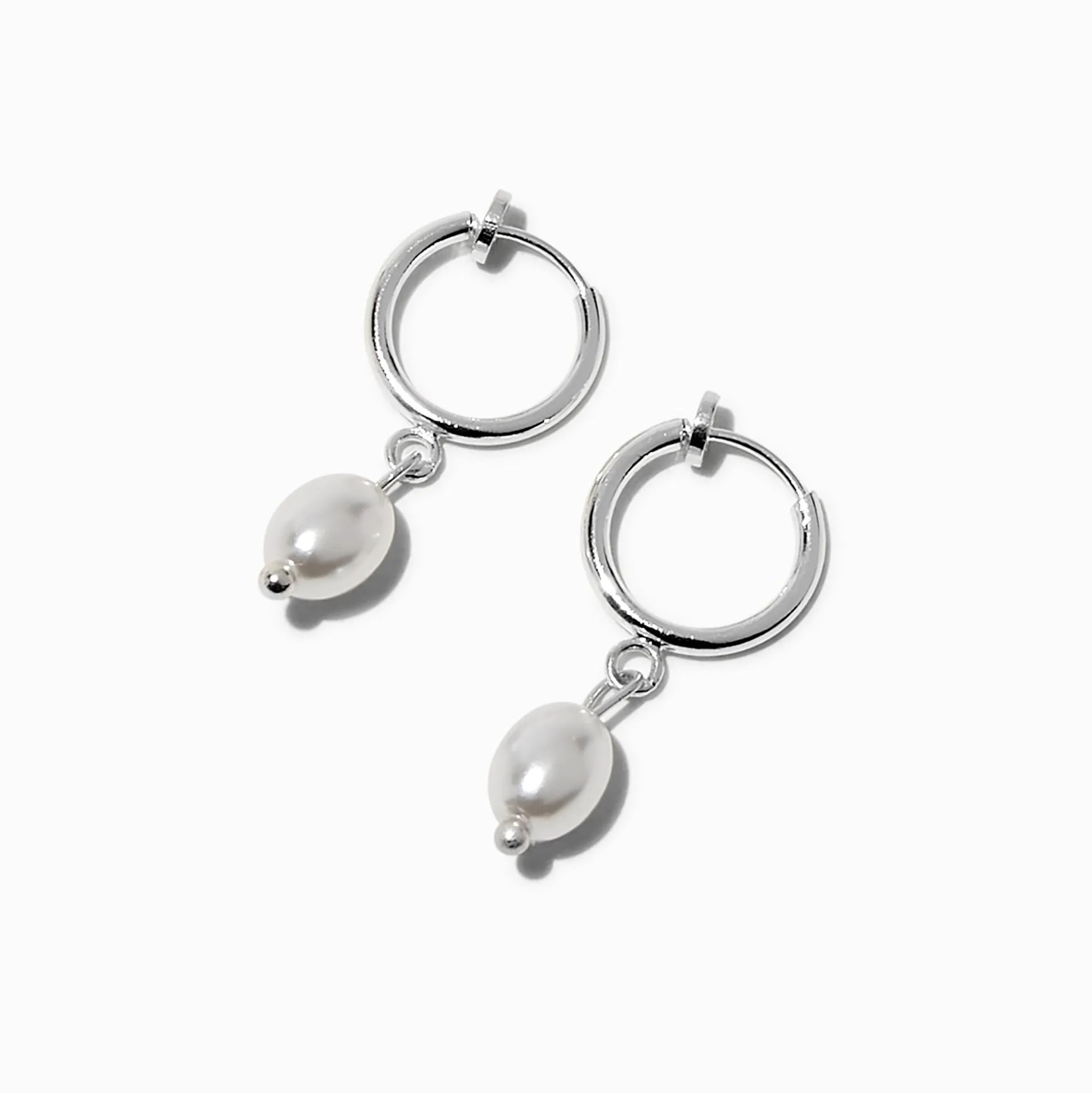 Finish your fit in classic style with these huggie hoops. The silver-tone beauties have a dangling faux pearl charm hanging from each hoop. Plus, they’re clip-ons for easy pierce-free wear.