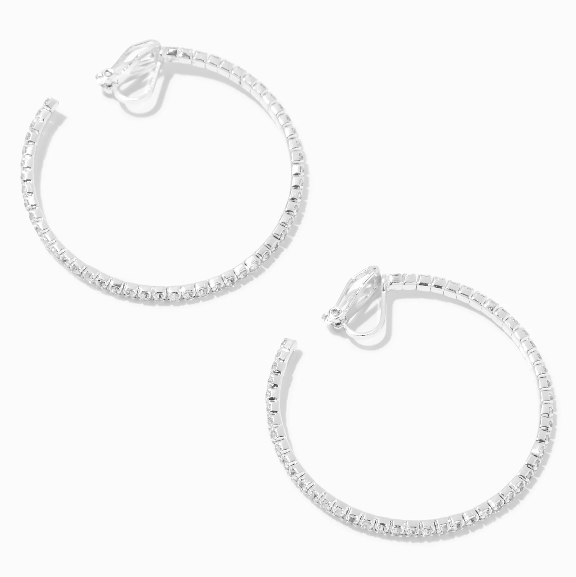 Switch up your basic hoop earring look with a pop of sparkle! This pair of silver-tone earrings features faux crystals along the edge of each hoop. Plus, they’re clip-on, so no piercing is required!