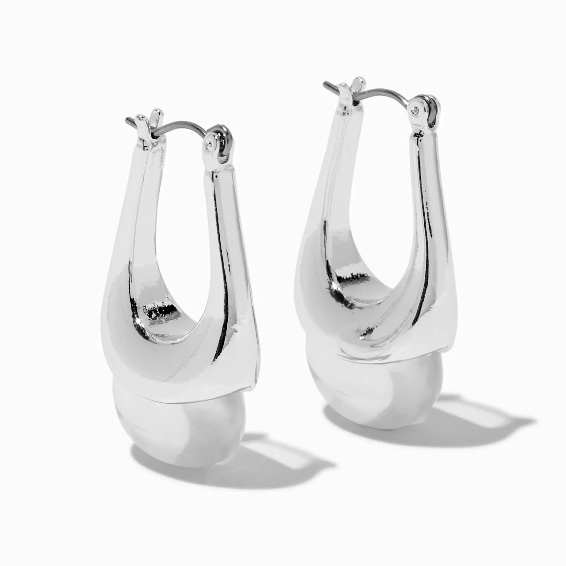 See clearly in these fashionable hoop earrings. The silver-tone designs have an oblong shape and a clear acrylic accent.