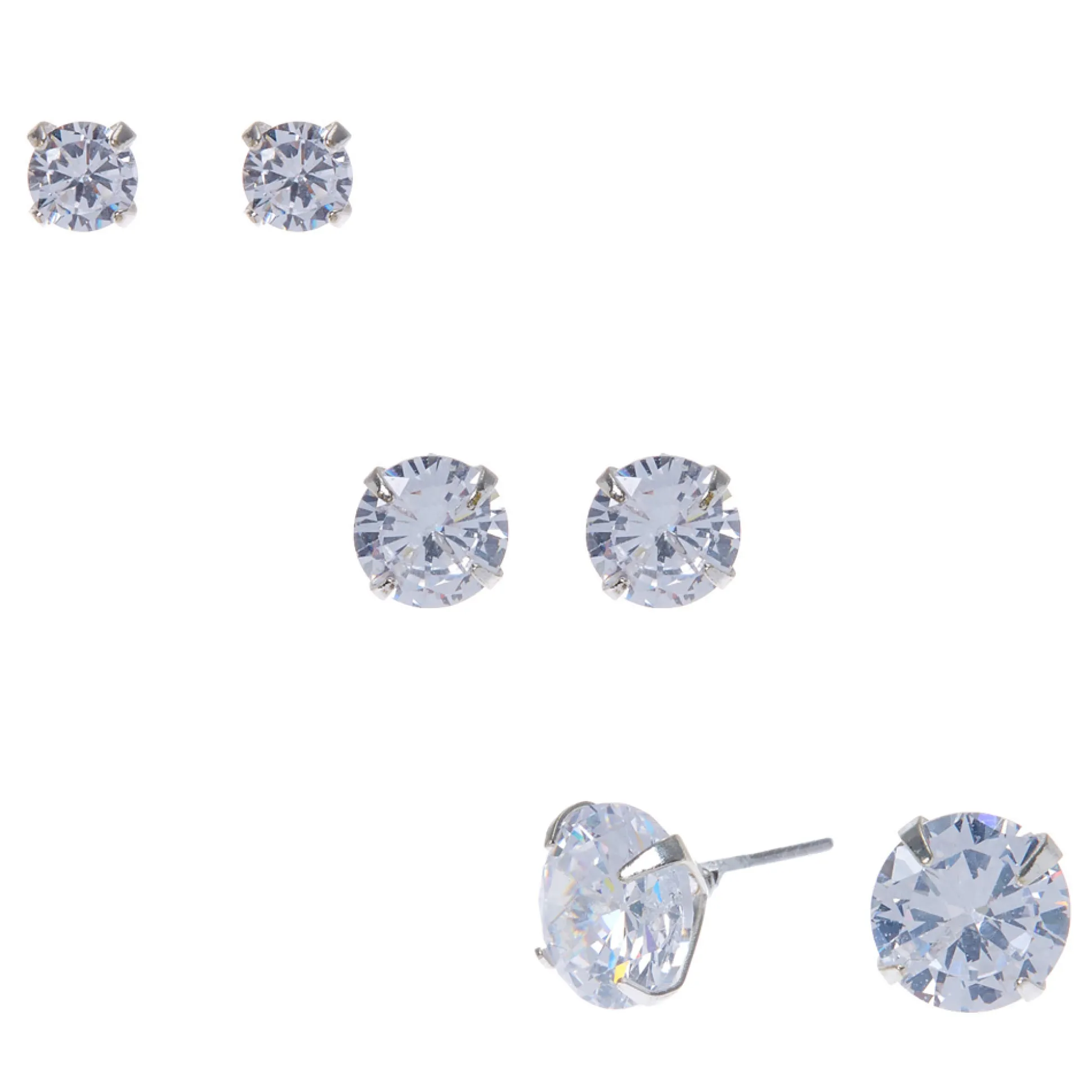 Cubic zirconia studs are always in style! This set comes with 3 pairs of earrings in 3 different sizes with round cubic zirconia stones.