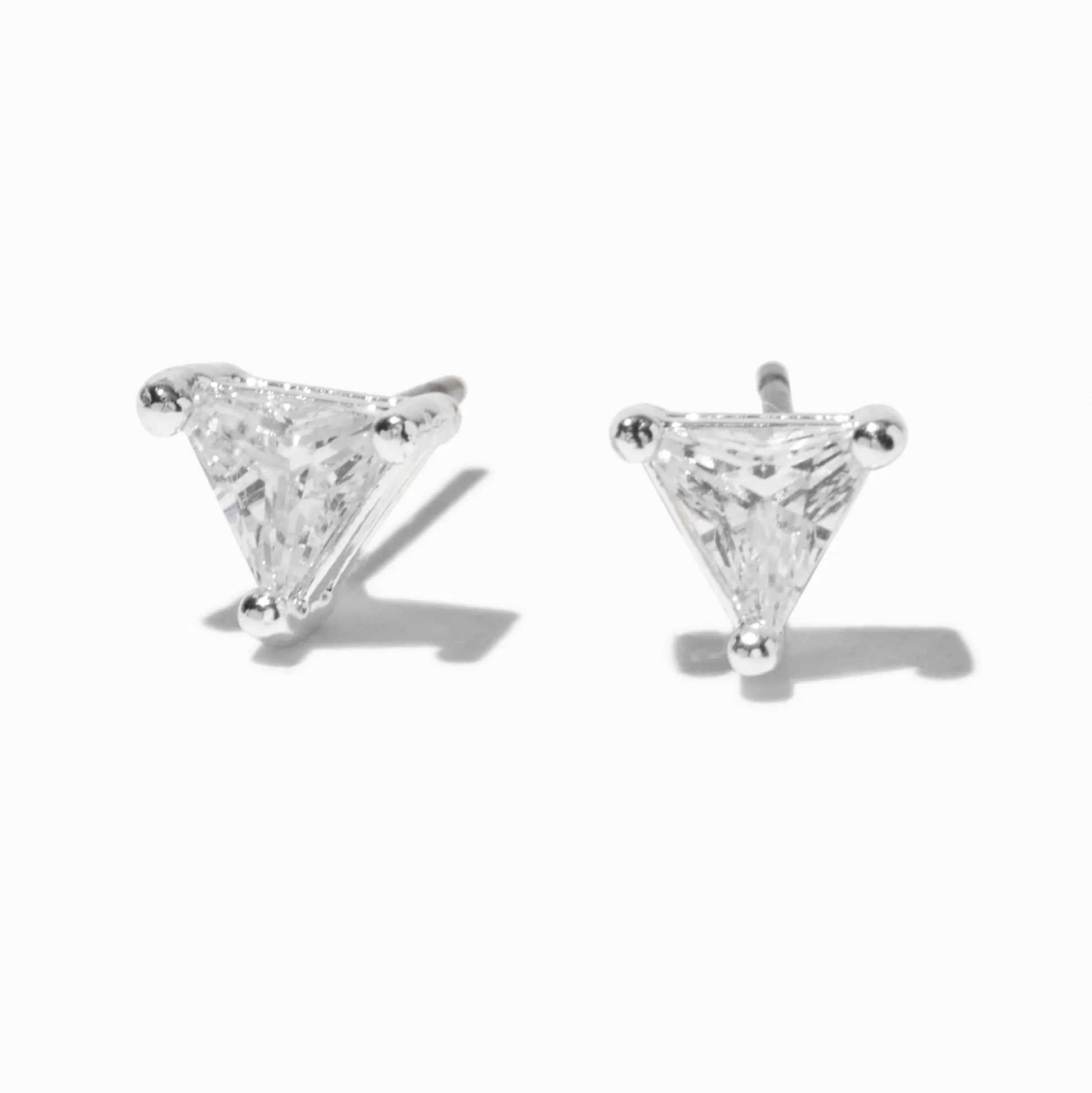 Add the sparkly finishing touch to your OOTD with these silver-tone stunners. The post back earrings have trillion-shaped cubic zirconias that sparkle pretty.