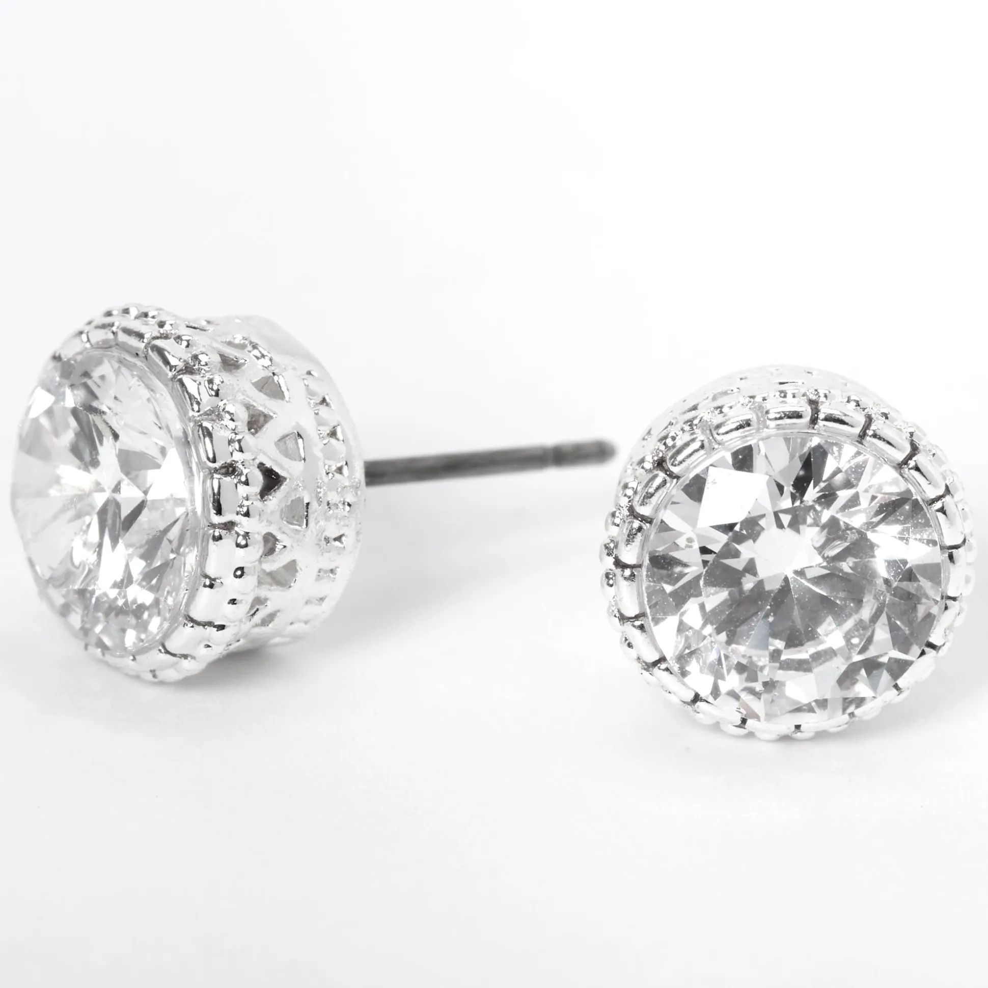 Add a touch of vintage-inspired sparkle to your look! These silver-tone stud earrings feature classic cubic zirconia stones with a unique vintage style setting.
