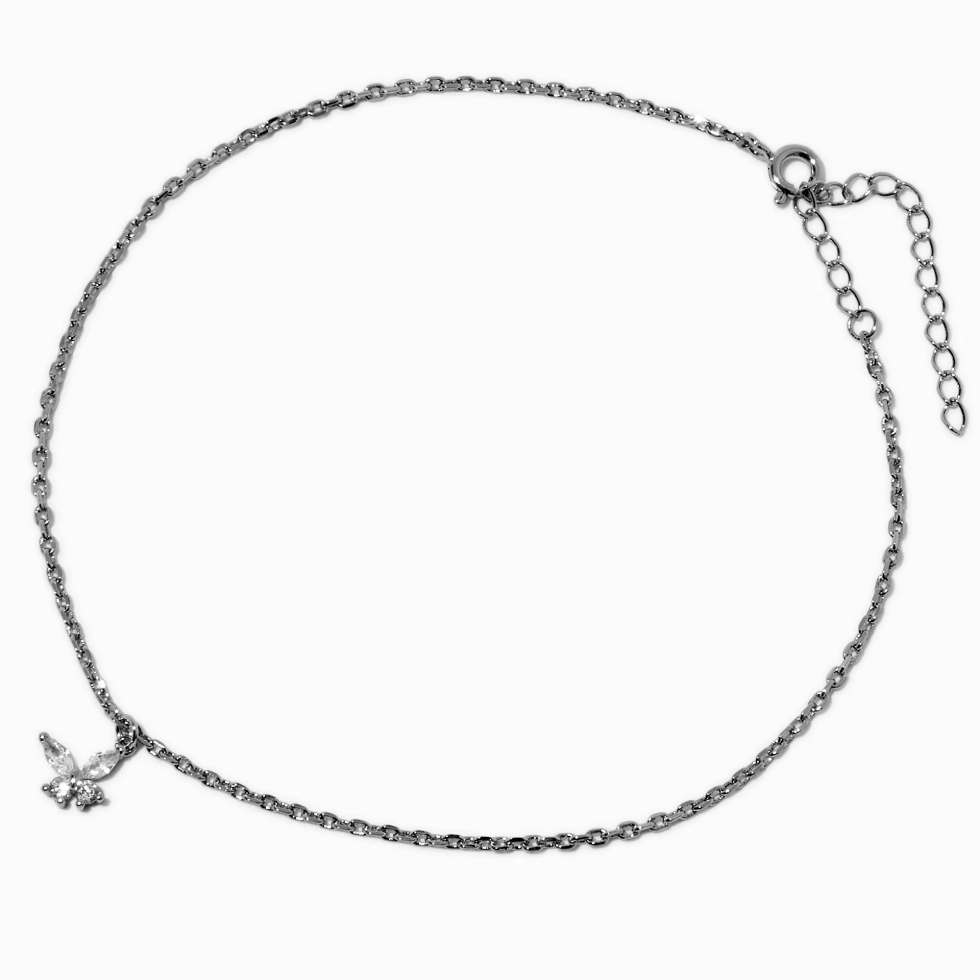 Add some flutter style to your summer fit with this anklet! The silver-tone chain design is finished with a cubic zirconia-covered butterfly charm.