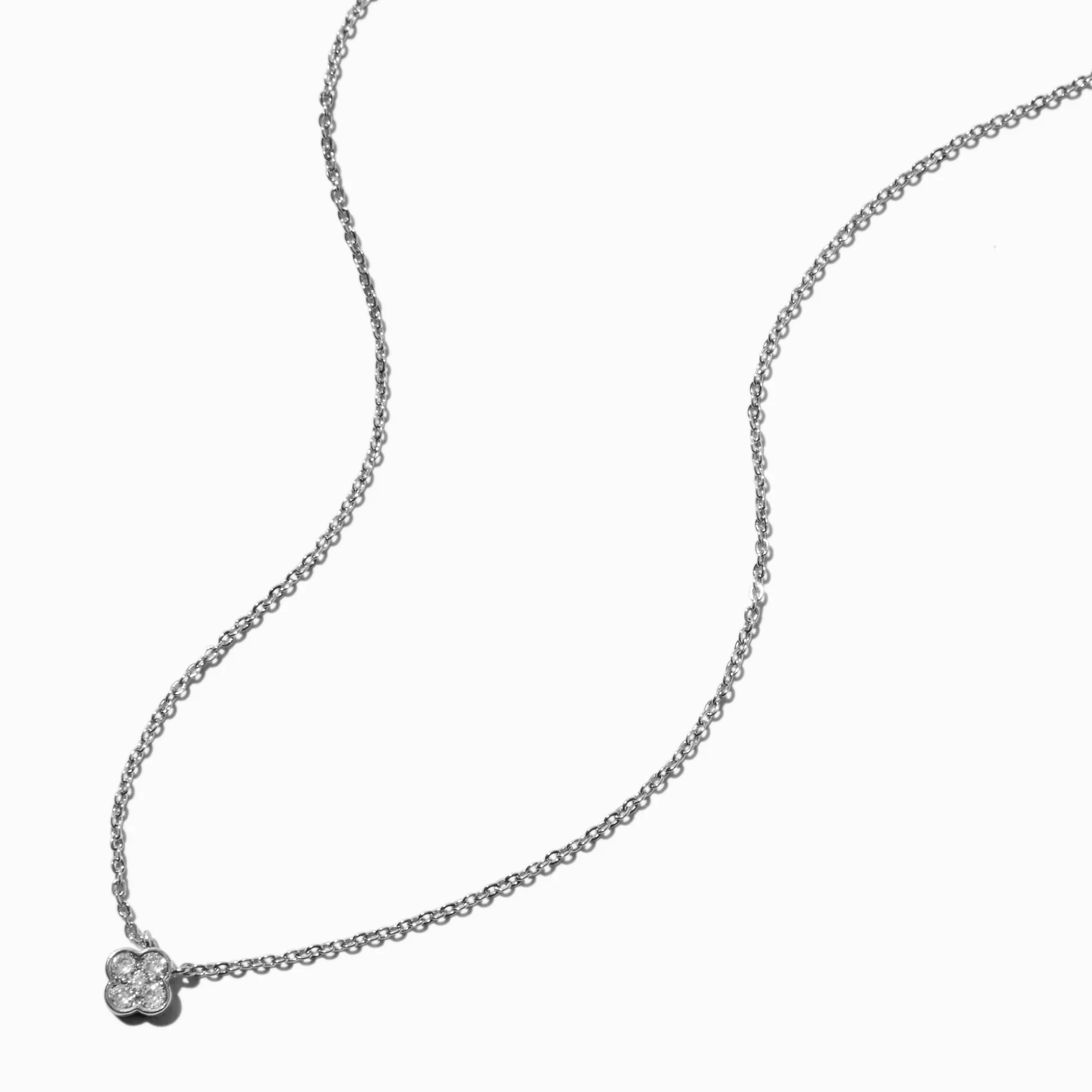 Set your sparkle level to maximum this homecoming in this cubic zirconia necklace. The silver-tone chain has a clover-shaped pendant that is covered in sparkly cubic zirconias.