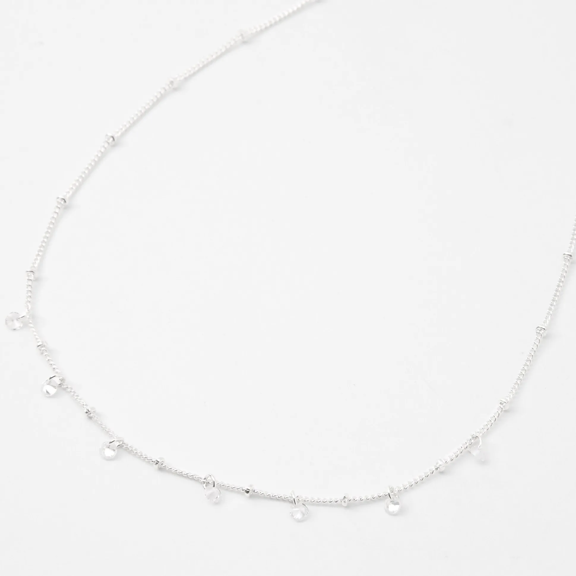 Add some subtle sparkly detail to your look with this choker necklace! Small cubic zirconia stones and beads accent this delicate silver-tone chain.