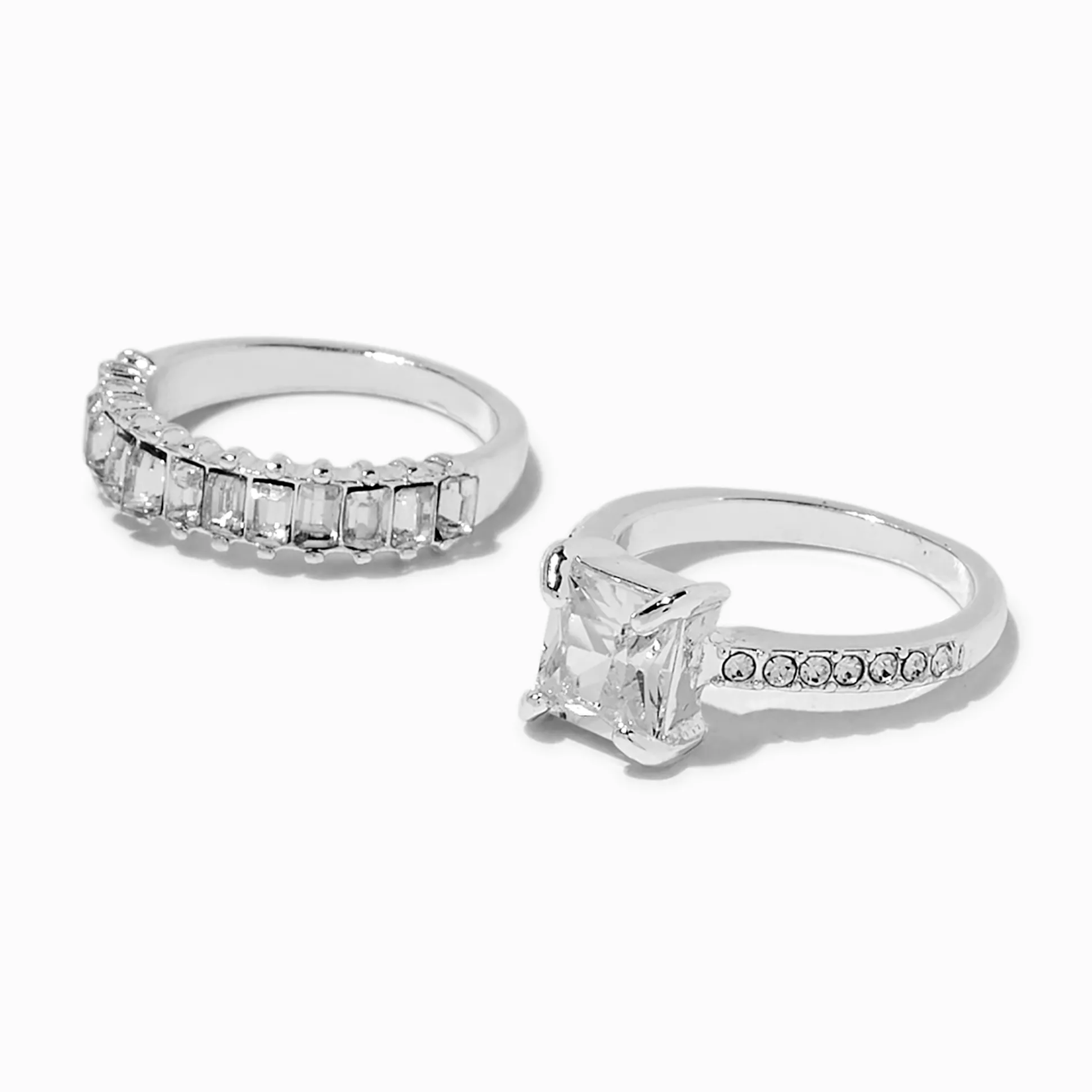 Be the first to review “Silver-tone Cubic Zirconia Emerald Cut Rings – 2 Pack” Cancel reply