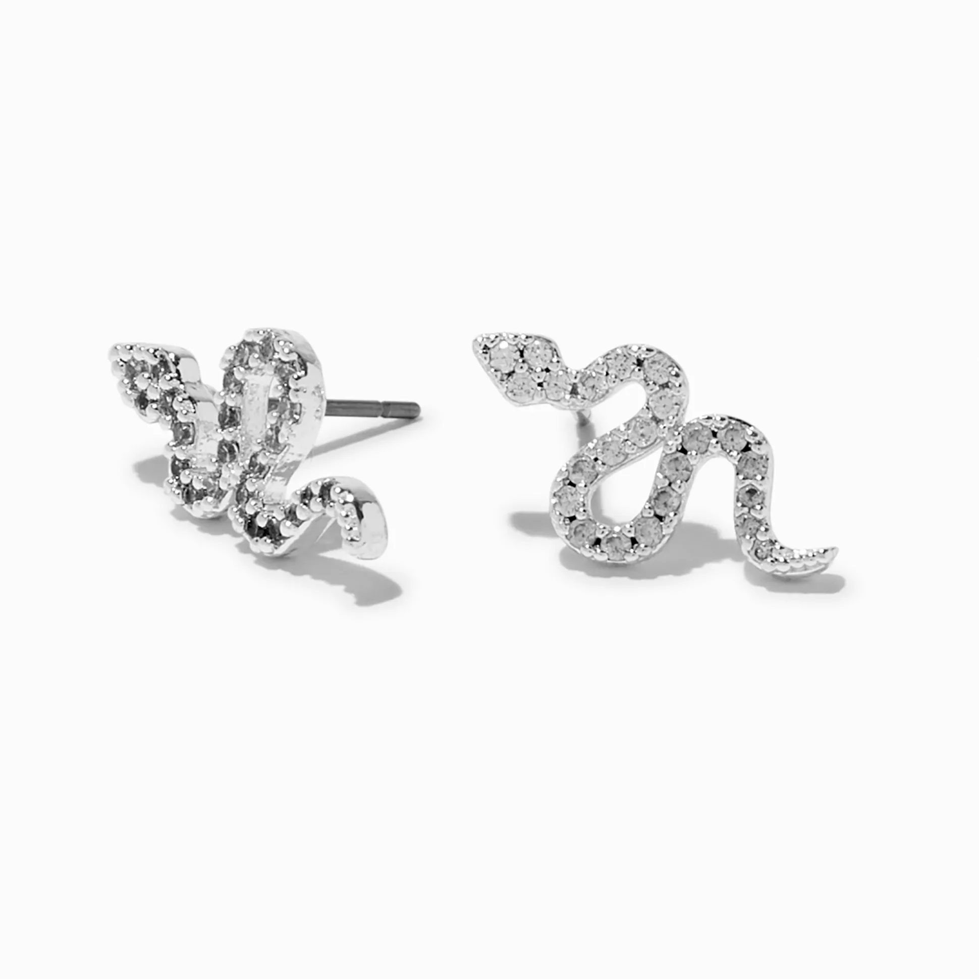Get a super trendy look by wearing this pair of earrings! The silver-tone snake shaped earrings are embellished with sparkly cubic zirconias.