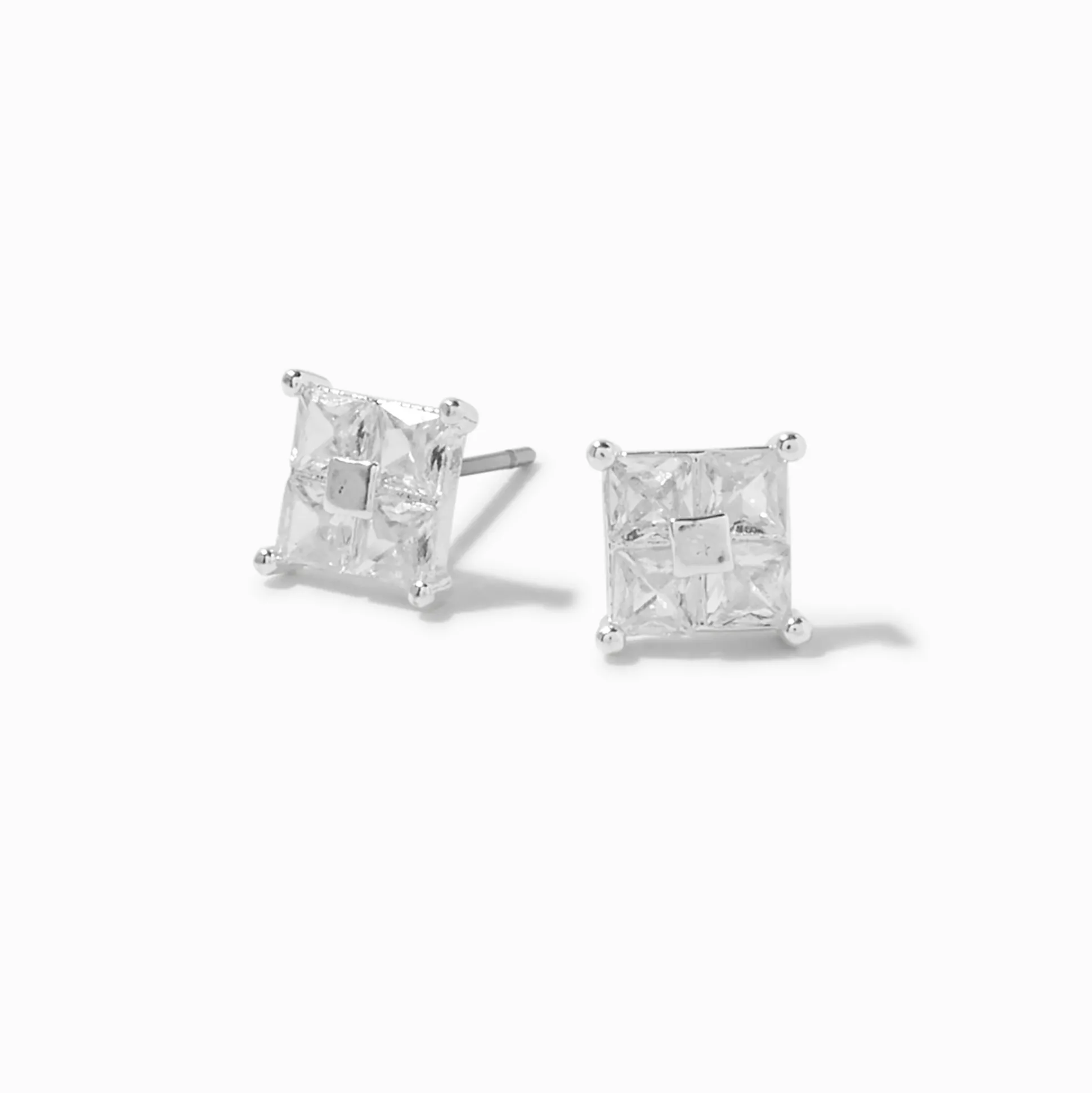 Add the sparkly finishing touch to your OOTD with these silver-tone stunners. The post back earrings have a quad cubic zirconia design that makes it hip to be square.