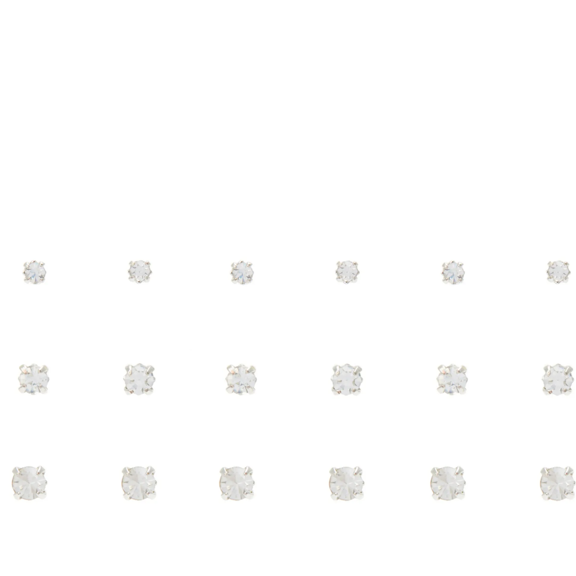 Shine a little or a lot with these graduated stud earrings! Includes three of each: small, medium, and large square-shaped studs with sparkly faux crystals on each pair.