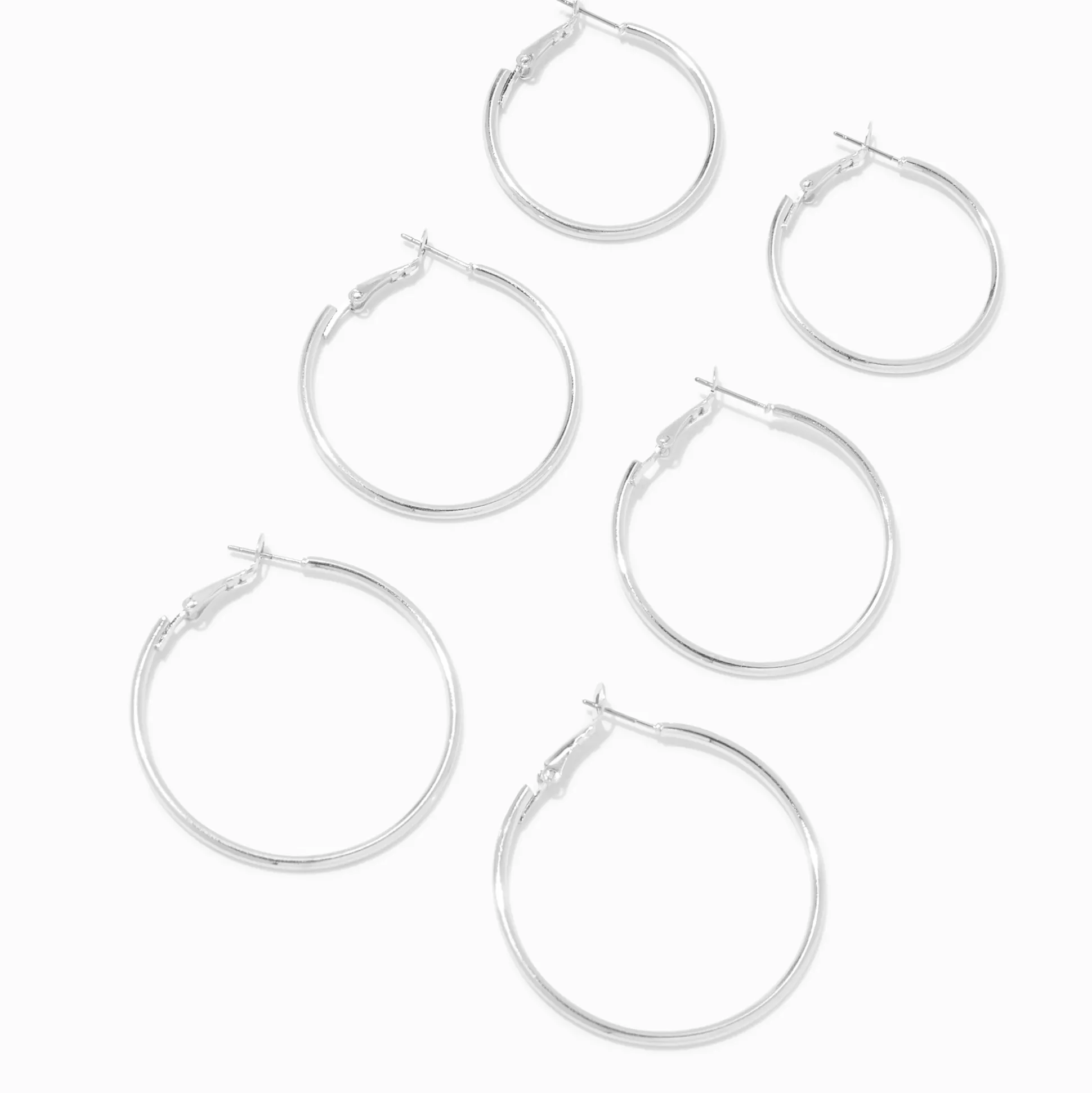 Keep your jewelry look simple and fresh with this set of hoop earrings! Dress them up or dress them down, these silver-tone hoops are a must-have.