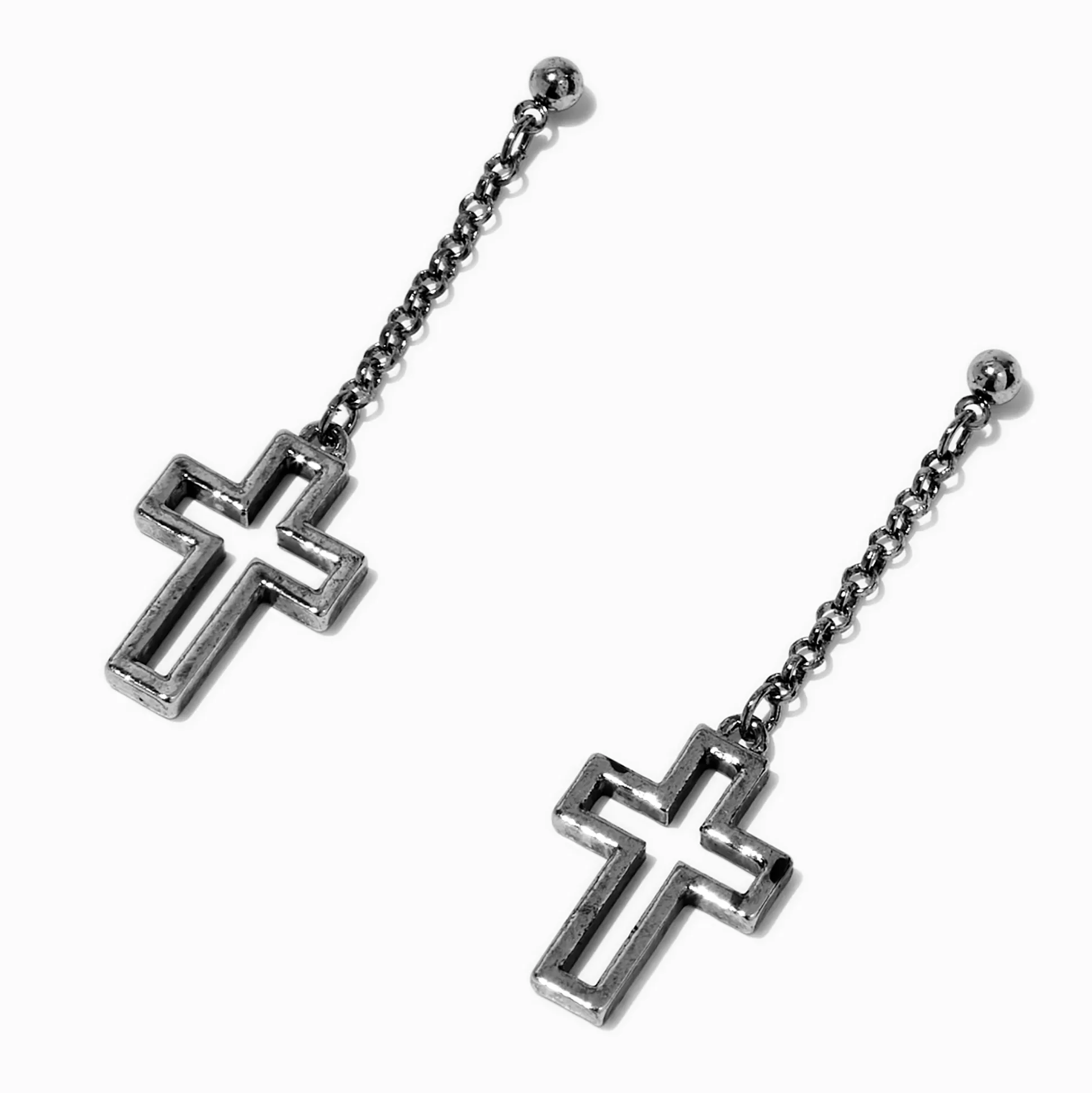Whether on Sunday or any day of the week, showing off your faith is always in style. These silver-tone drop earrings have a linear chain with a cutout cross design.