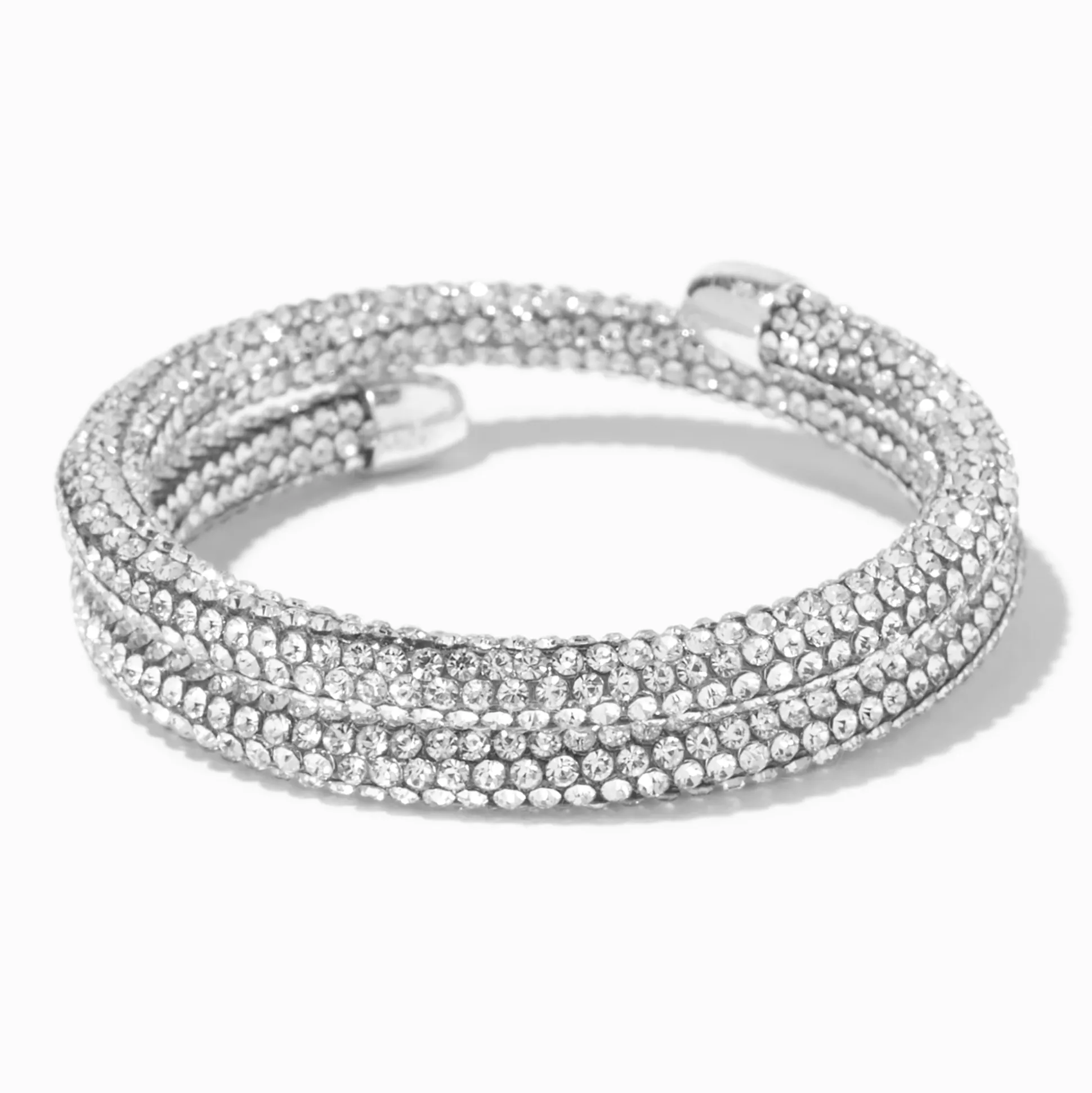 Wrap this beauty around your wrist for instant sparkle and elegance! It’s completely covered with glass rhinestones that catch the light.