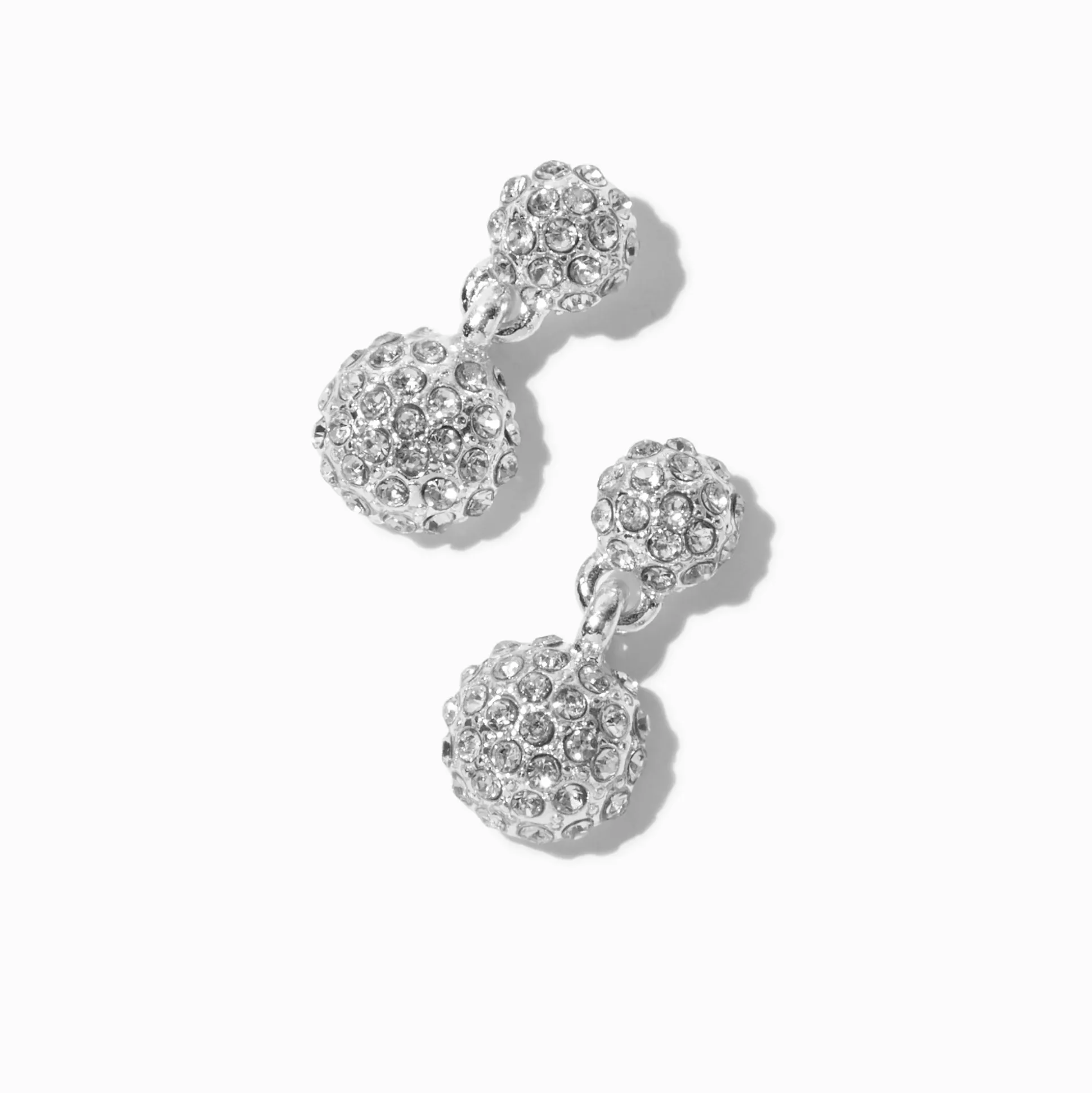 Sparkle in these silver-tone beauties. The drops have stacked fireballs that are covered in faux crystals.