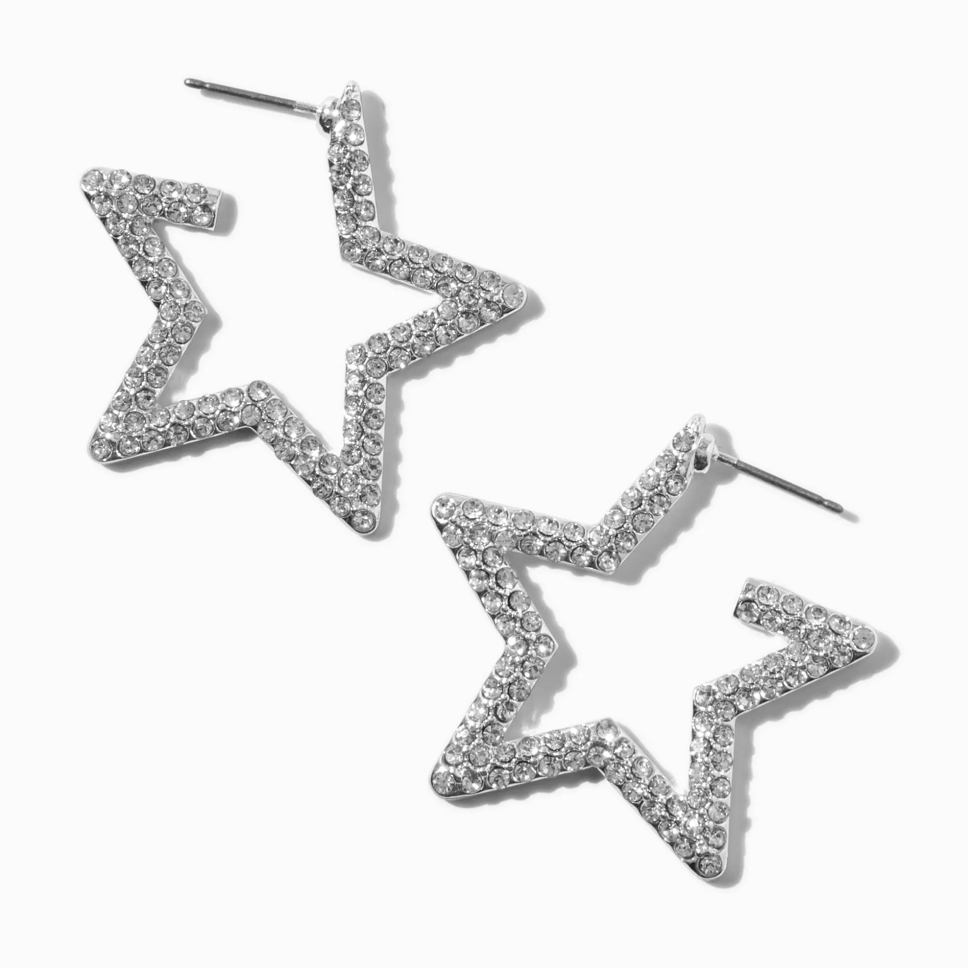 This set of hoops feature a silver-tone star outline. These post back cuties have a pavé design.