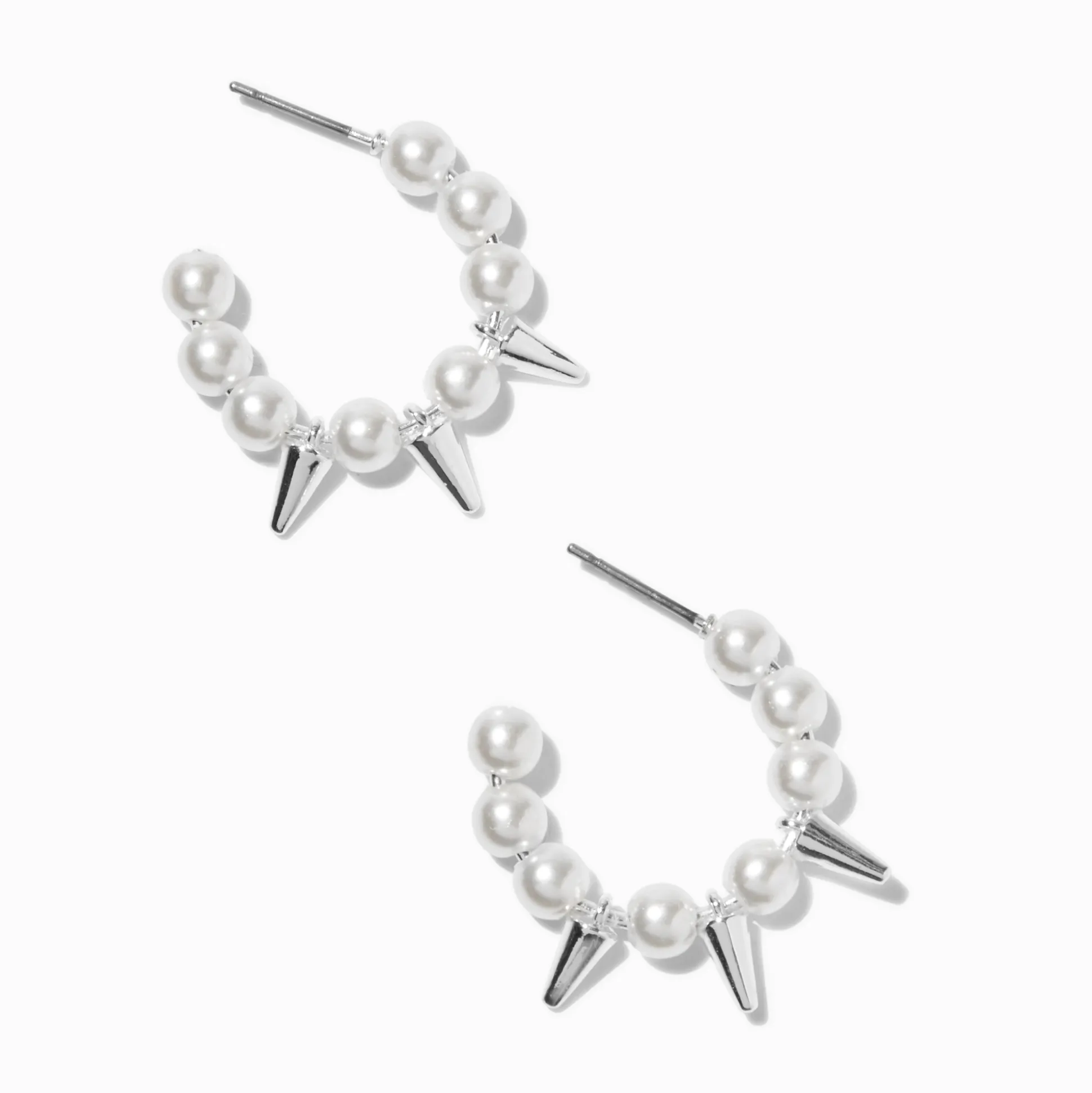 Mix hard and soft with these hoop earrings. The silver-tone designs have faux pearls and spiked details to add a little punk to your look.