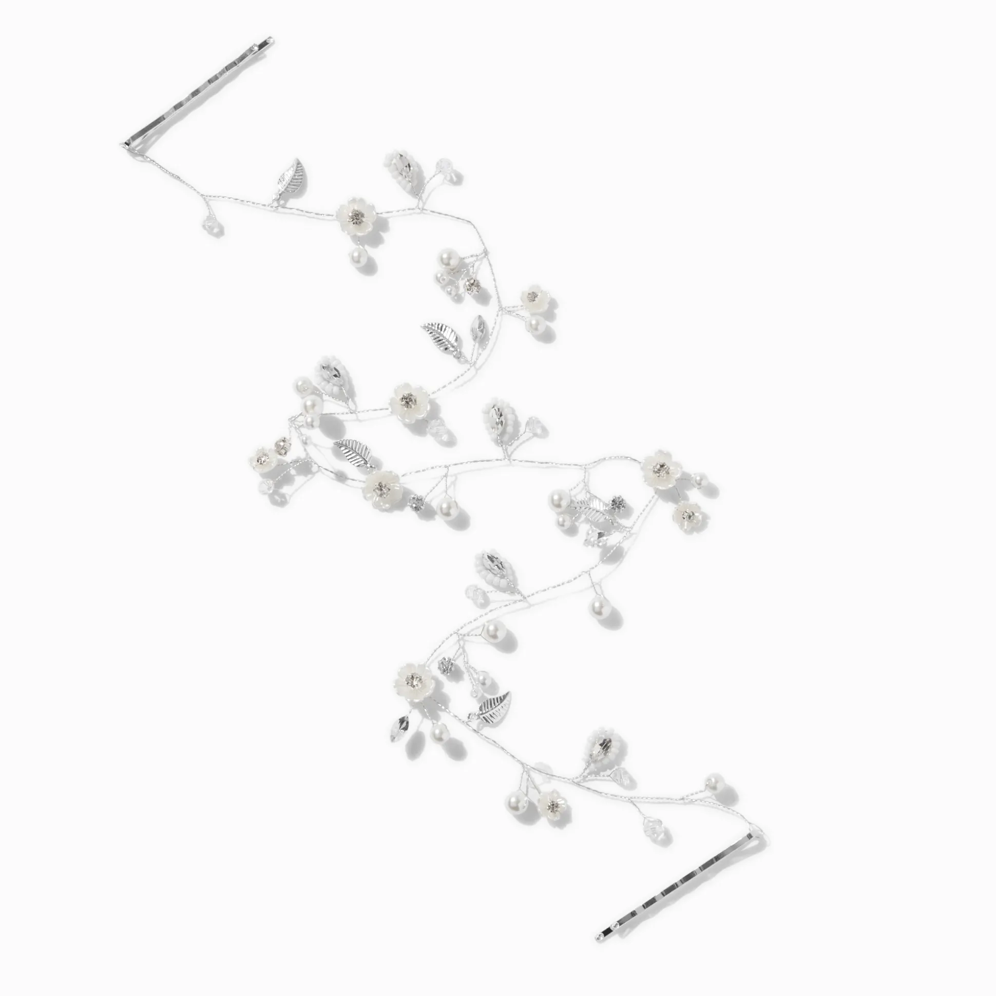 A hair swag, with pins on each end for secure placement, is a quick and easy way to add elegance to your hair for special occasions. This one features silver-tone pearlized flower details. It can be worn like a headband or wrapped around a bun.